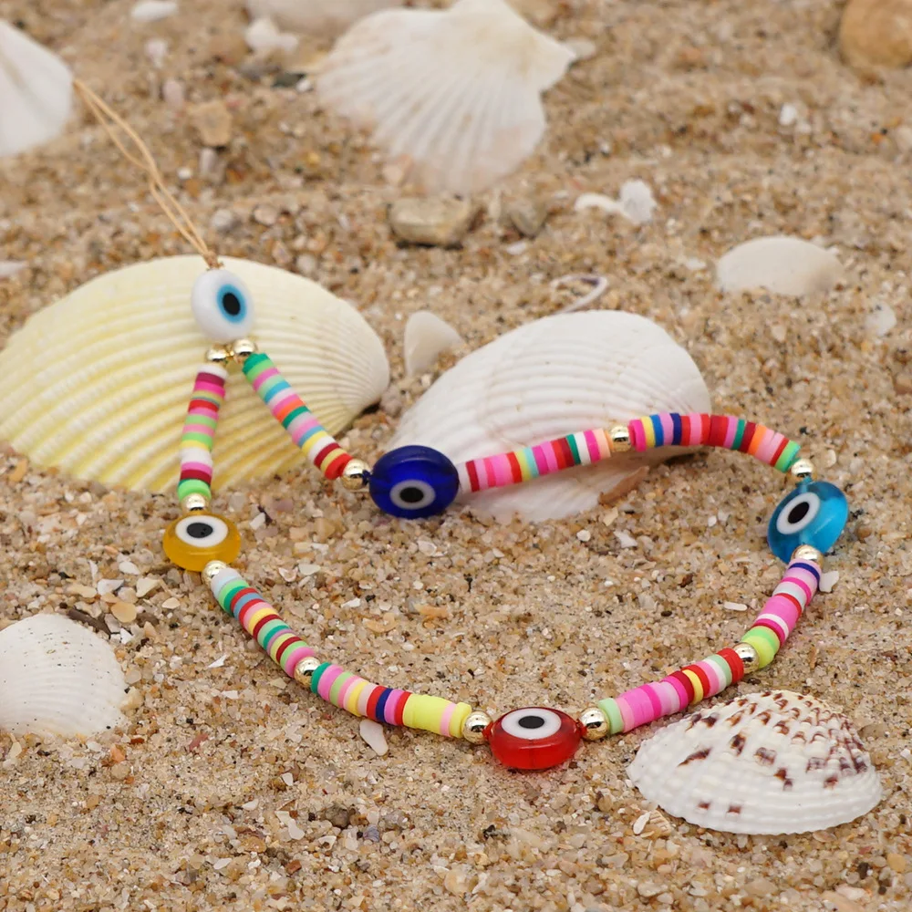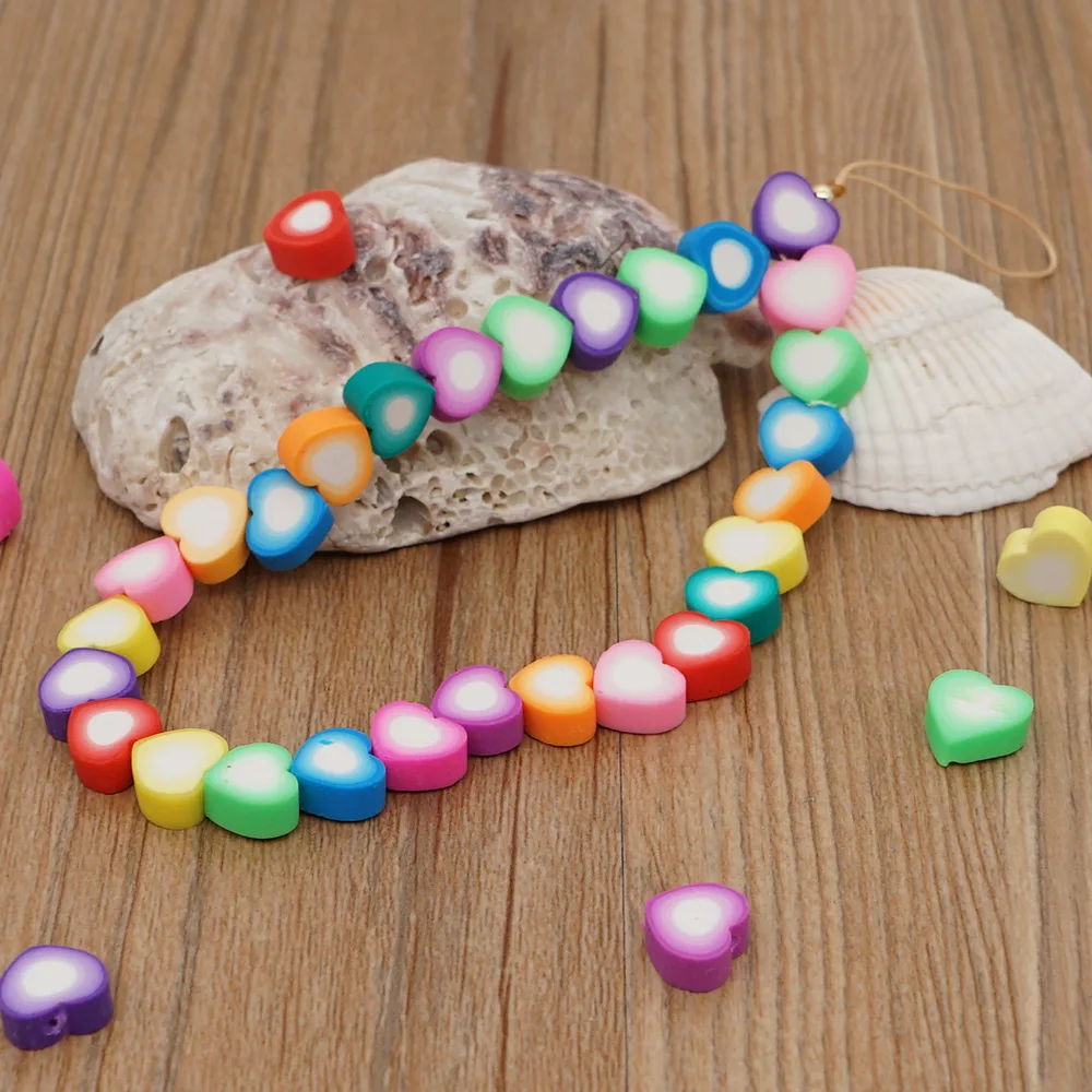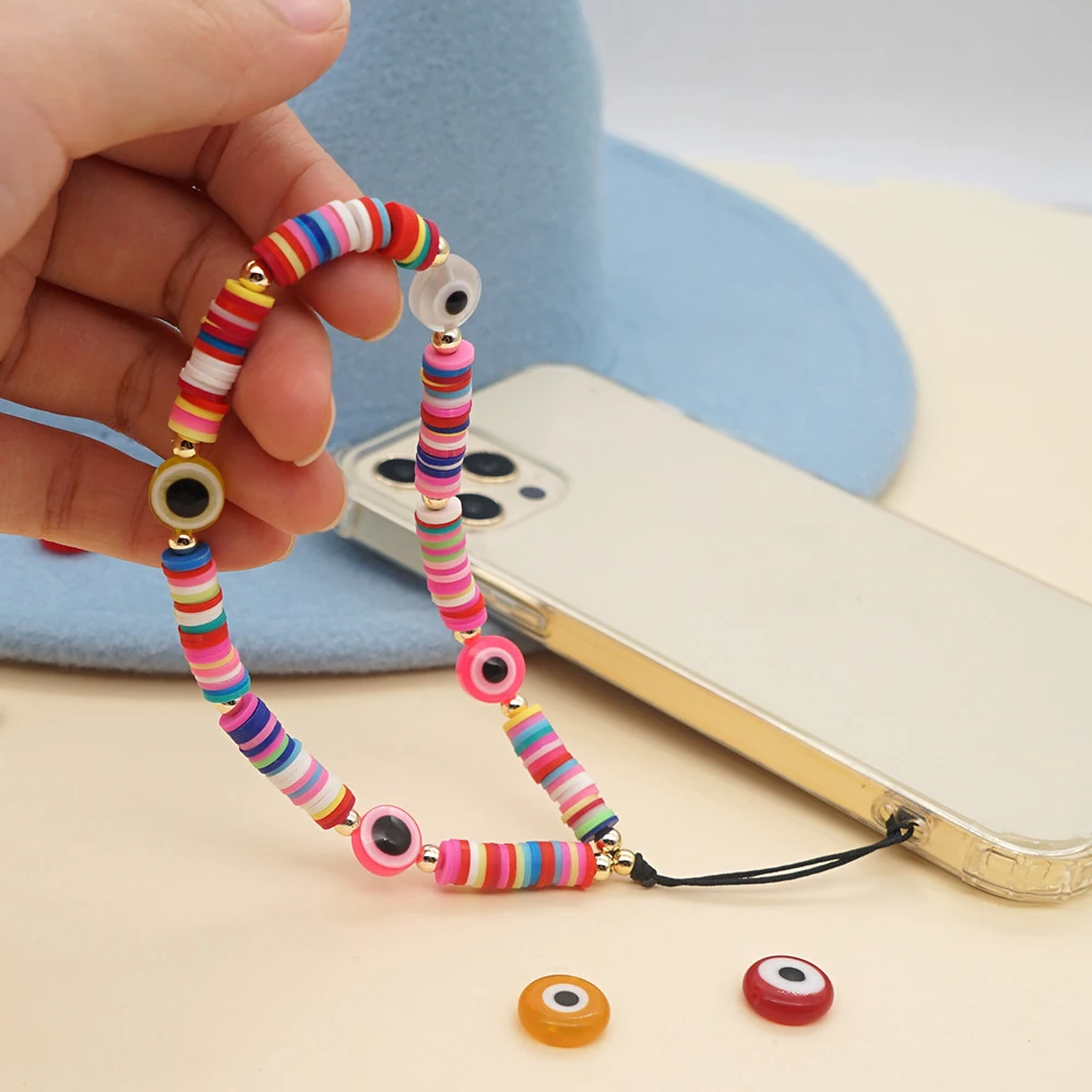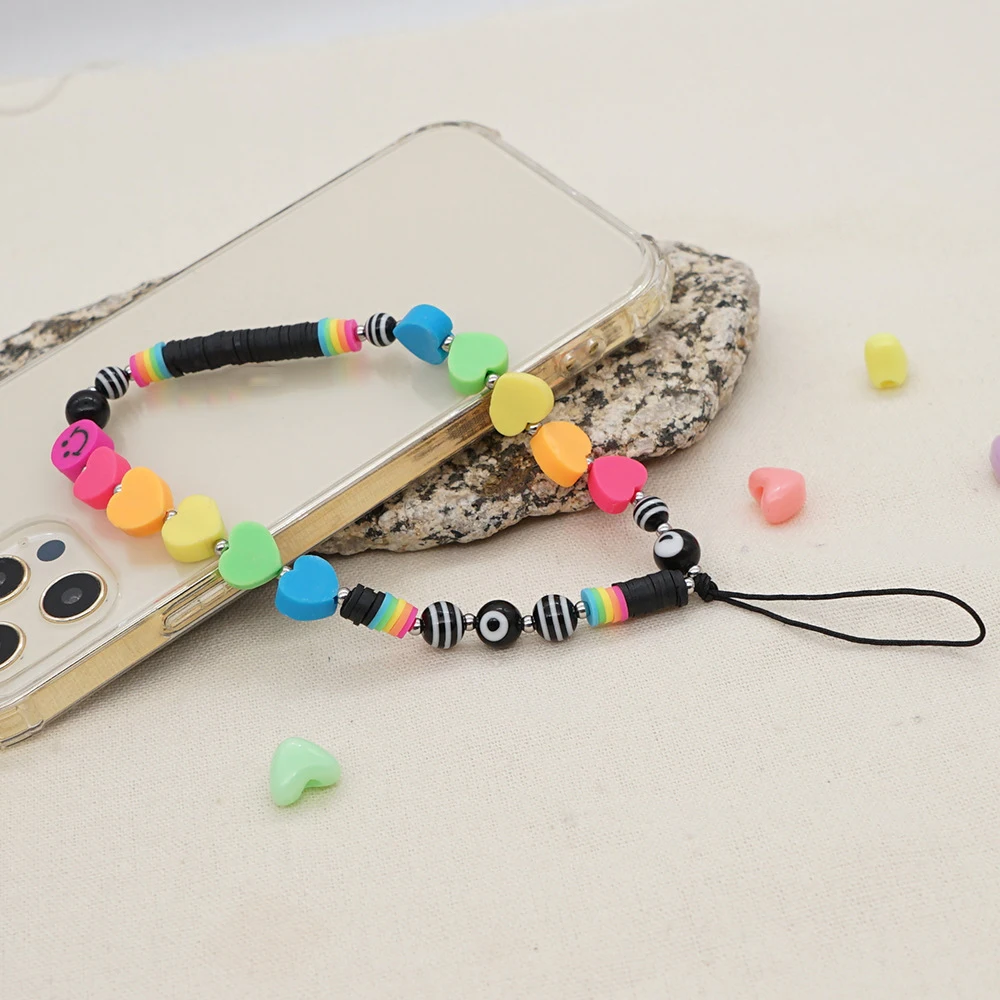 Яркие глиняные бусины Heishi, ремешок для защиты от потери, шнурок для фруктов, сердец, цветов, бусин, фотоцепочки для женщин
