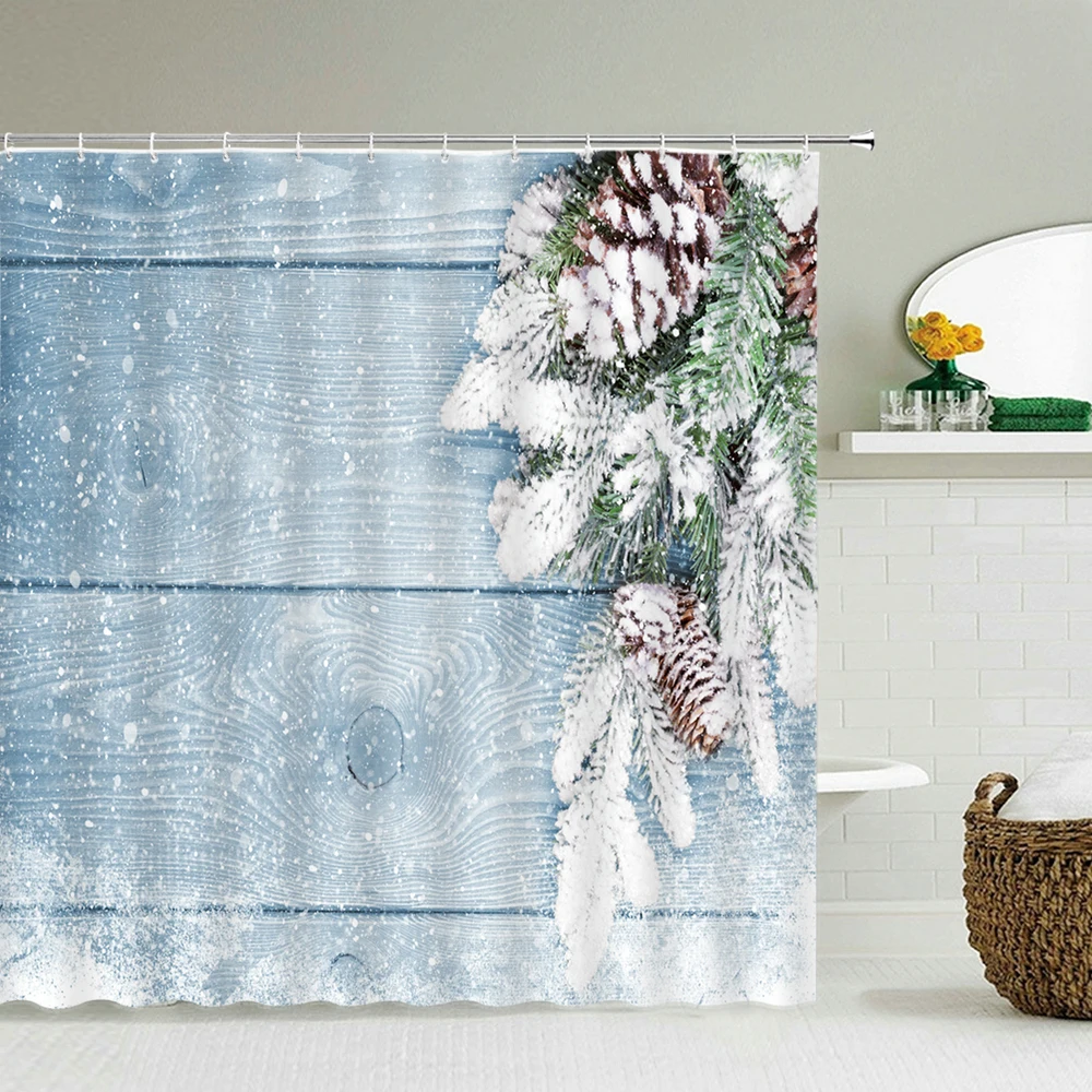 Рождественская тканевая занавеска для душа с 12 крючками, забавные ...