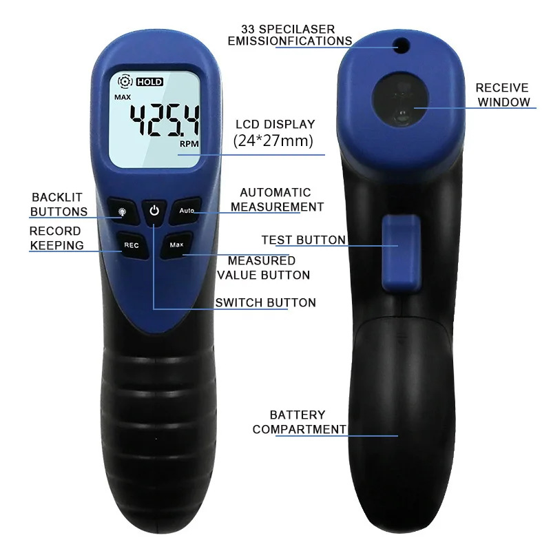 Портативный тахометр, лазерный цифровой тахометр, Бесконтактный Диапазон измерения: 2,5-99999 ОБмин, цифровой мотор, ЖК-дисплей, колесный токарный станок, измеритель скорости