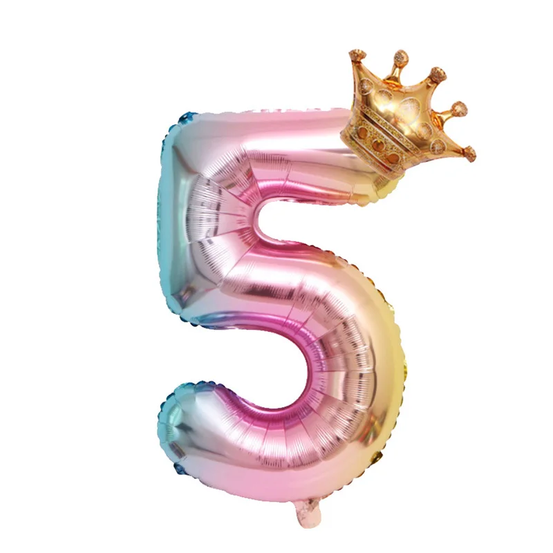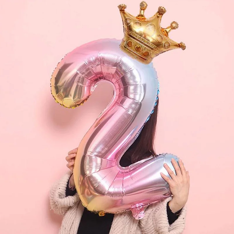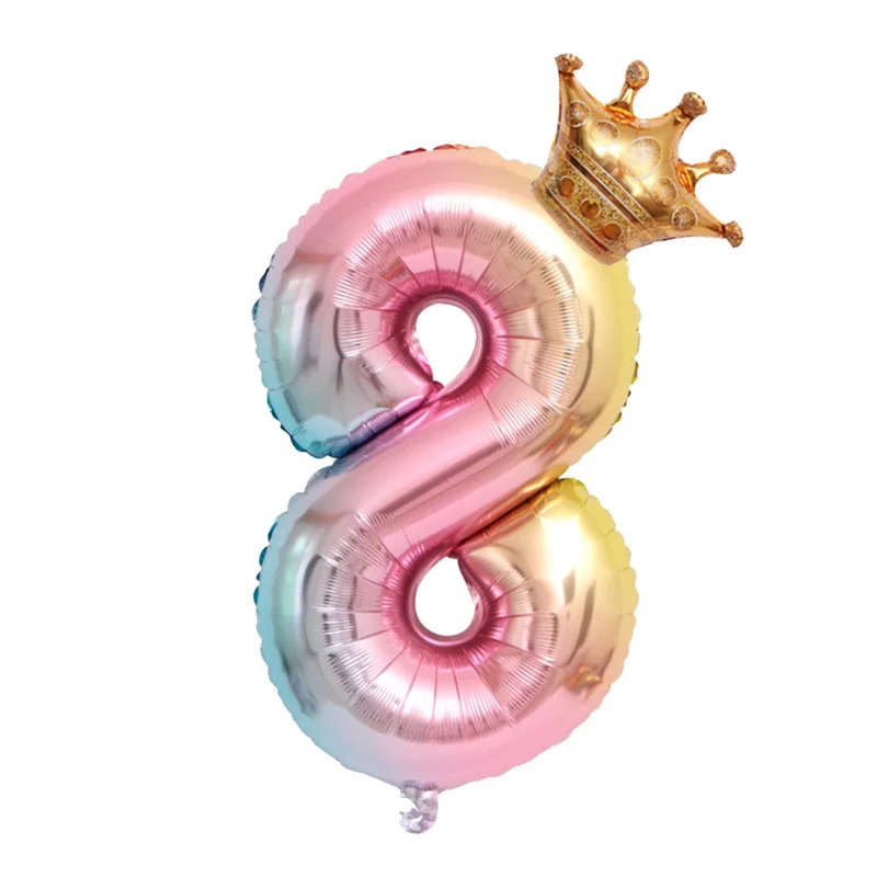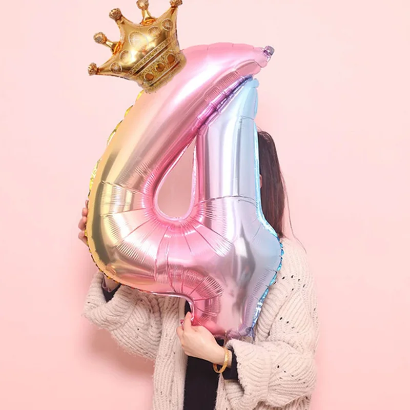 Короны из фольги с градиентом, шарики в виде цифр 0-9, 32 дюйма, для украшения дня рождения, детской комнаты