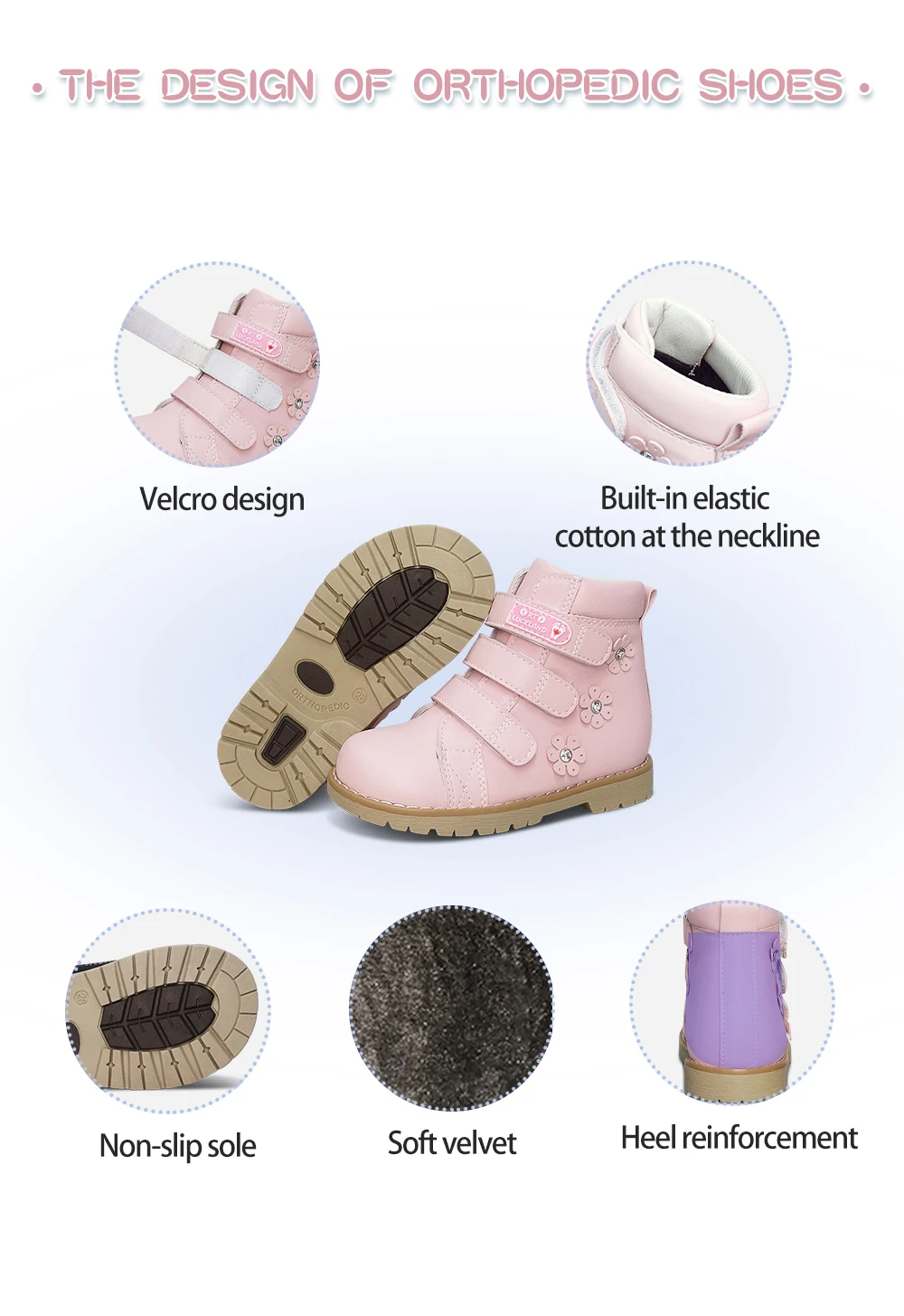 Ботинки-мартинсы детские ортопедические, из кожи и бархата