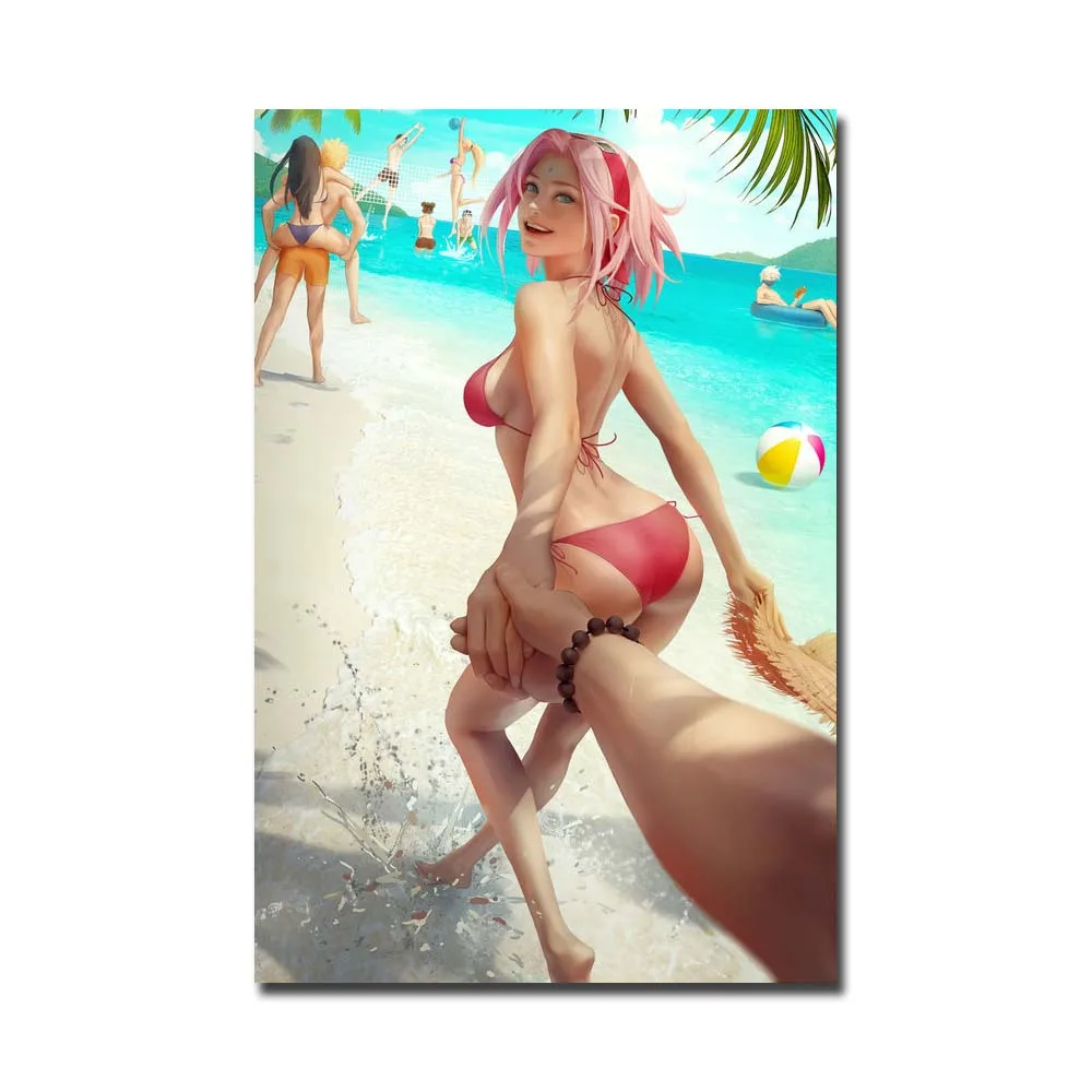 Печать домашний декор в скандинавском стиле японское аниме Tsunade Sakura Hinata сексуальная леди плакат искусство шелковая Картина на холсте для гостиной-010