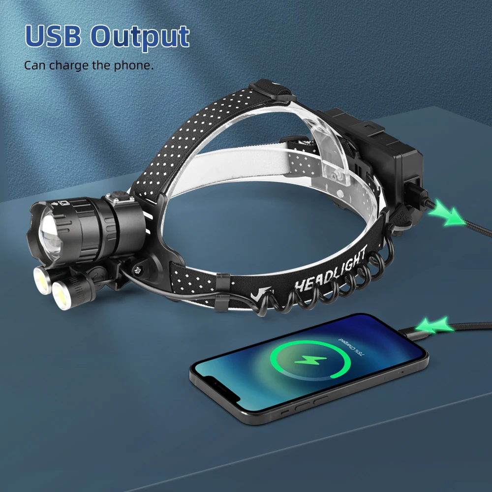 Налобный фонарь XHP199 с COB светодиосветодиодный, перезаряжаемый о...
