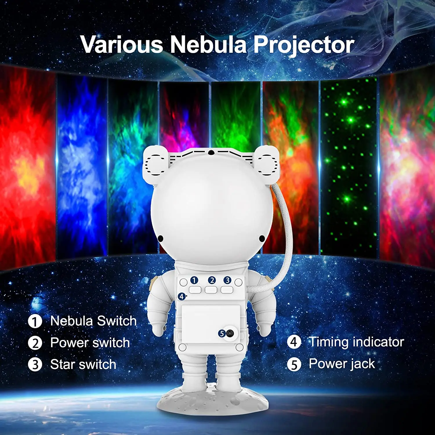 ★Вращающийся: головка проектора астронавта может быть отрегулирована на 90 градусов, Рукоятка может быть отрегулирована на 360 градусов, она может поворачиваться под любым углом, и ее легко перемещать и использовать