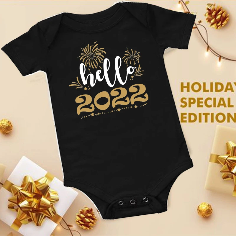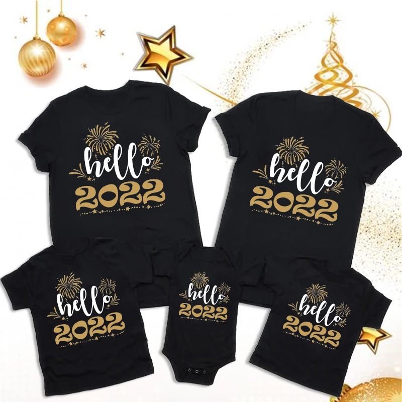 Одинаковая семейная одежда Hello 2022, наряд на новый год для матери, отца, детей, футболка, Комбинезоны для маленьких мальчиков и девочек, праздничная семейная футболка