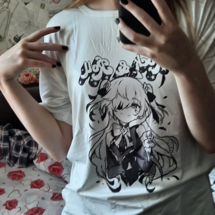 Заказала XL, чтобы был прям оверсайзнутый оверсайз, НО! Рисунок маленький. Плохо пропечатан. Материал футболки ужасный, очень прозрачный, рукава короче чем на фото! В общем полное не соответствие с фото. Не советую это заказывать.