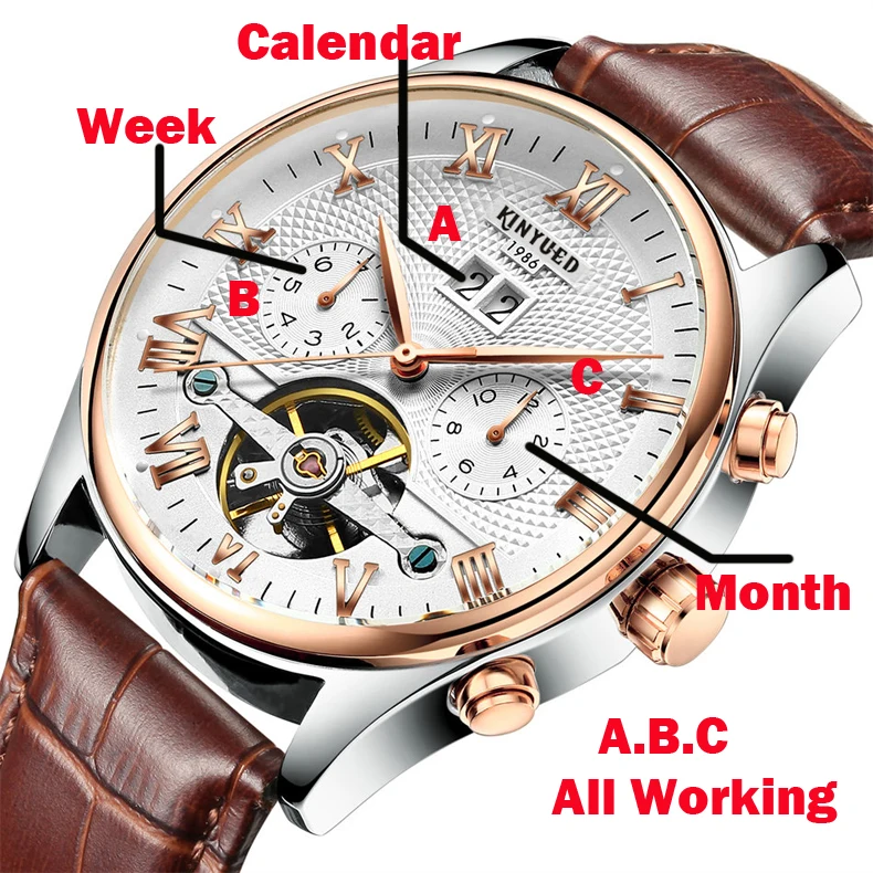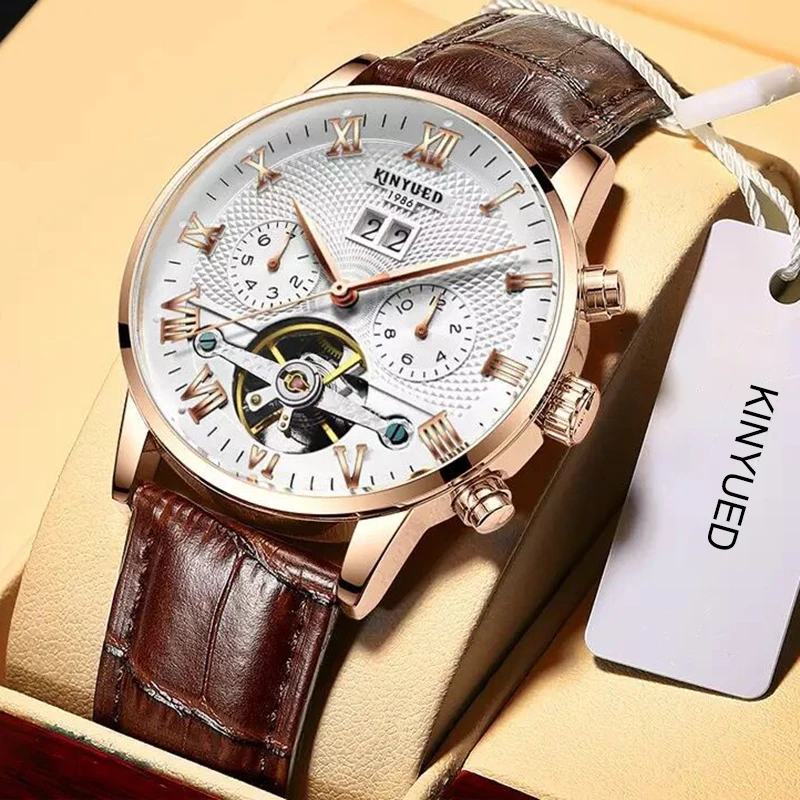Часы KINYUED мужские, механические, с турбийоном, кожаные, повседне...