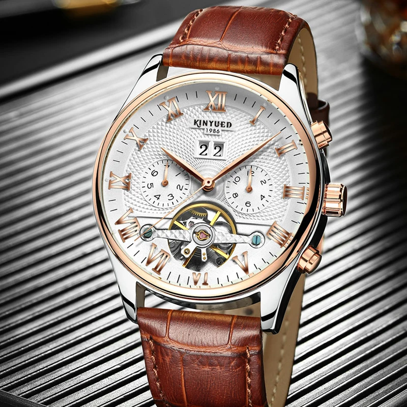 Часы наручные KINYUED Мужские автоматические брендовые механические Спортивные Повседневные деловые с турбийоном 2021