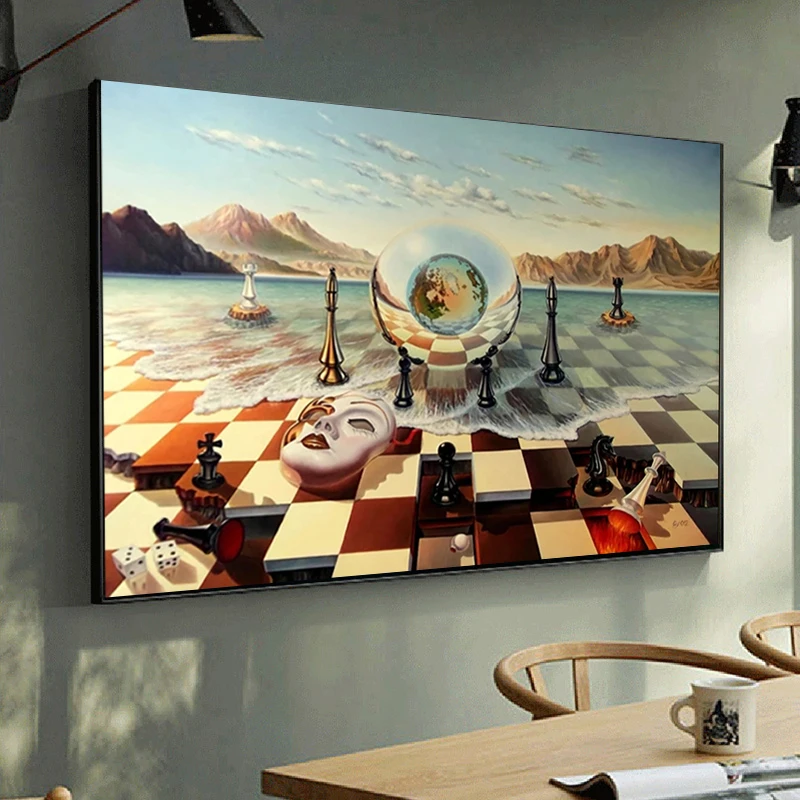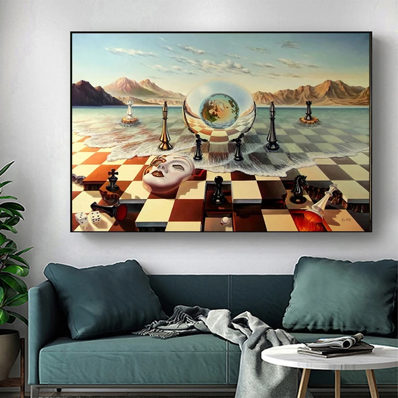 Абстрактный странный Сальвадор Дали Сюрреализм Шахматная маска морской холст плакат и печать Картина Настенная картина Куадрос для гостиной