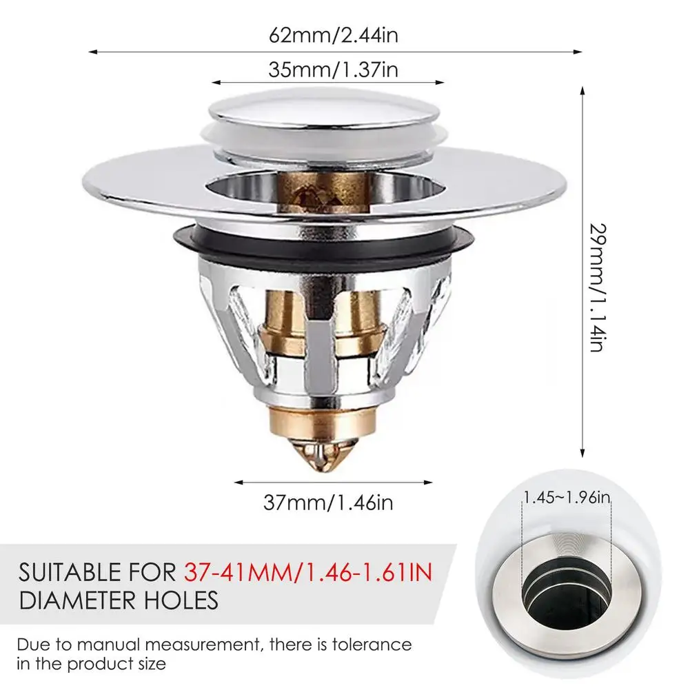 1 шт. нержавеющая сталь отскакивающий сердечник нажимной сливной фильтр Универсальный умывальник пуш-тип Ловца волос Раковина пробка для ванной ловушки