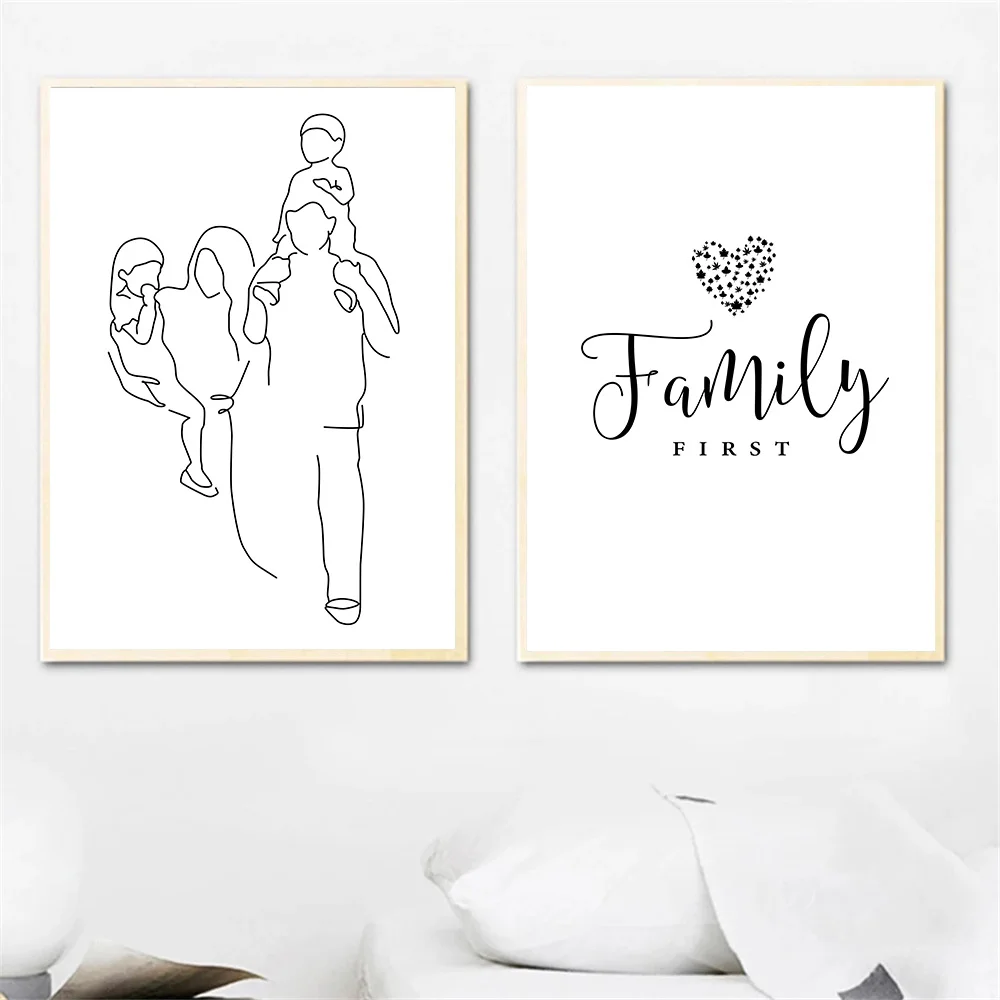 Абстрактный рисование линий настенное Искусство Холст Семейные цитаты принты мама папа сын дочь постер картины гостиная домашний декор
