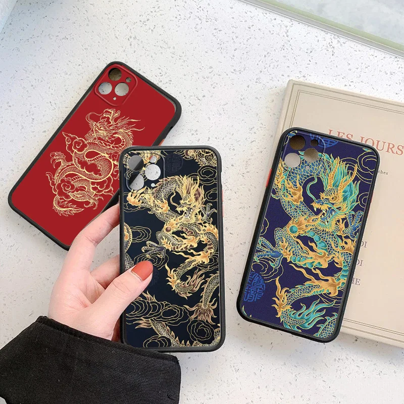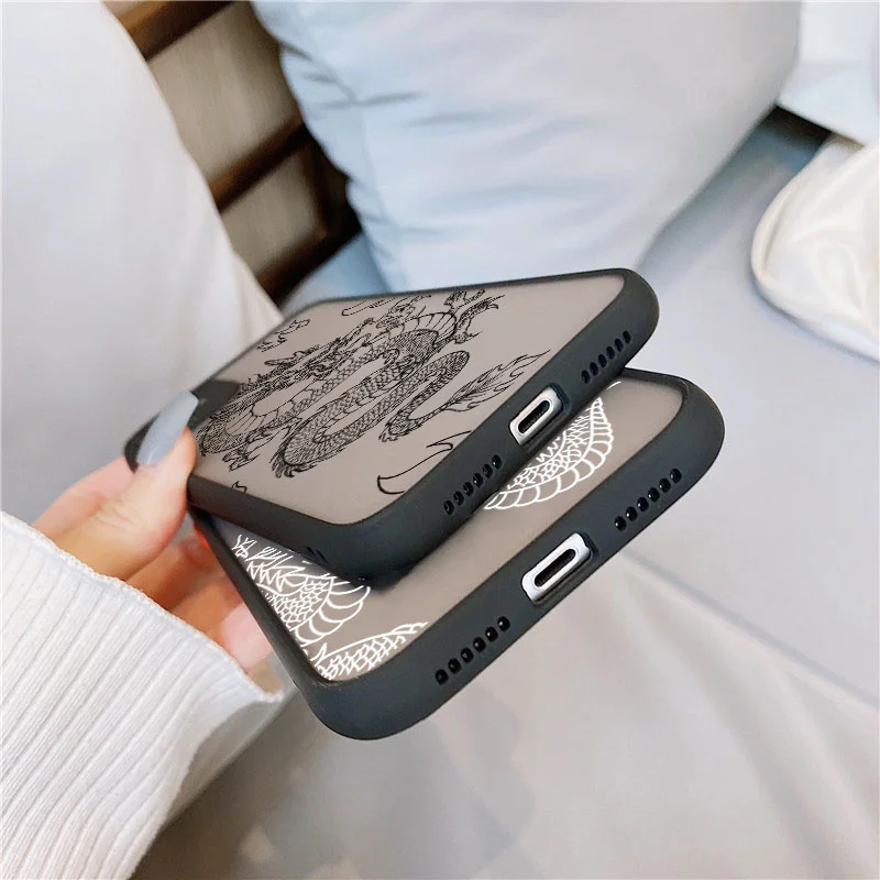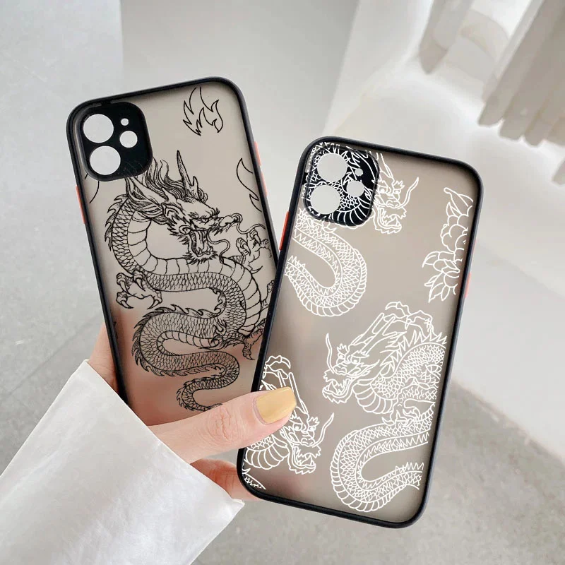 Жесткий чехол для телефона из ПК для Xiaomi Redmi Mi 11 Note 10 10T 9T 9S 8 7 7A Poco X3 F3 Pro Max Lite, матовая задняя крышка с изображением дракона