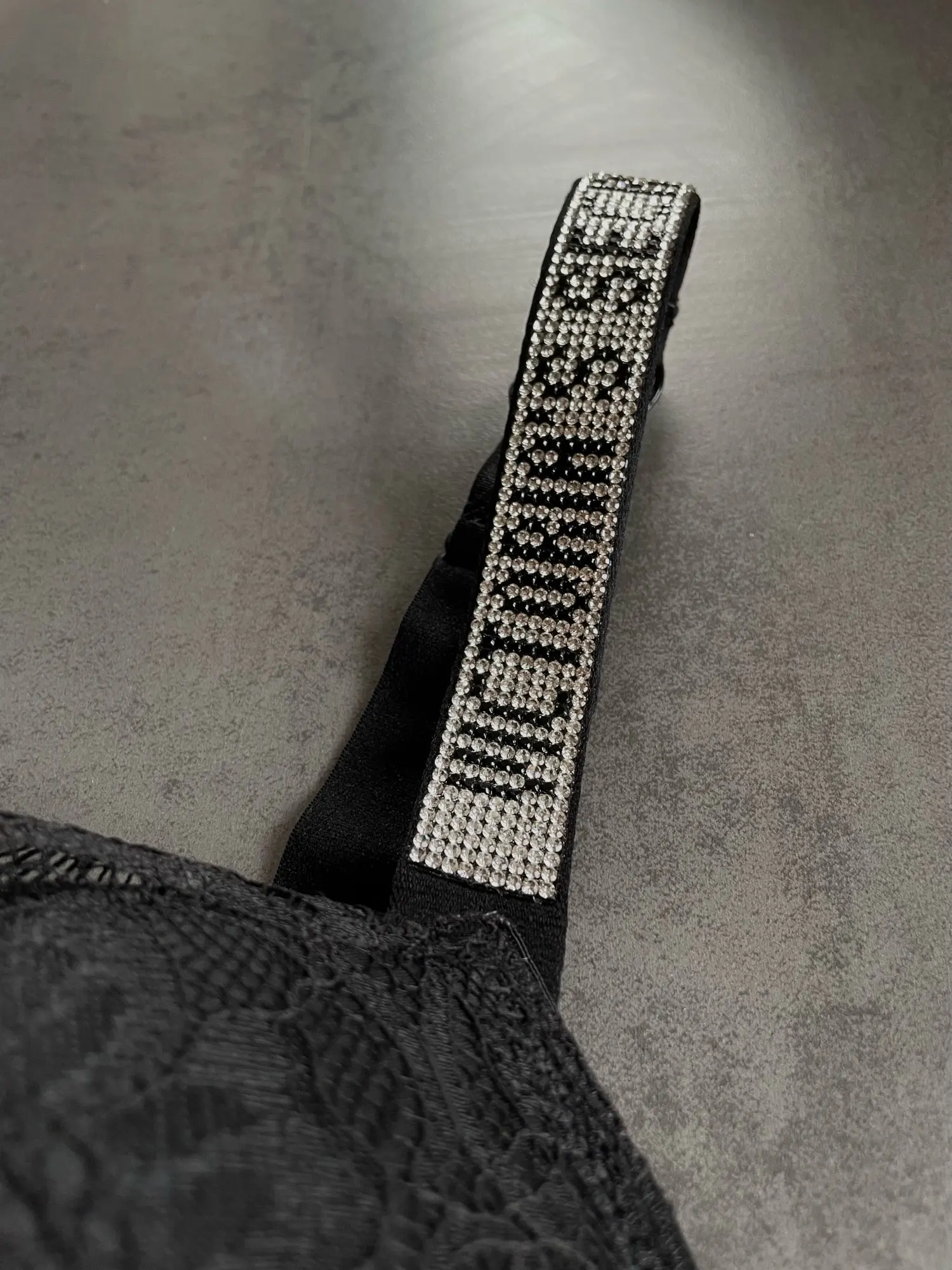 Тесьма плотно прилегает и немного меньше. Стразы приклеены, и этот аромат очень присутствует. Более умеренное качество, не стирать слишком часто, я думаю.