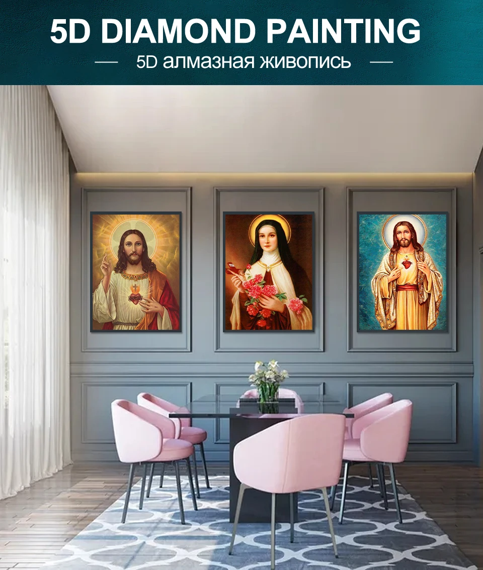 Алмазная 5D картина сделай сам, религиозная икона лидера, Набор для вышивки крестиком, полная вышивка, мозаика для творчества, стразы, Декор