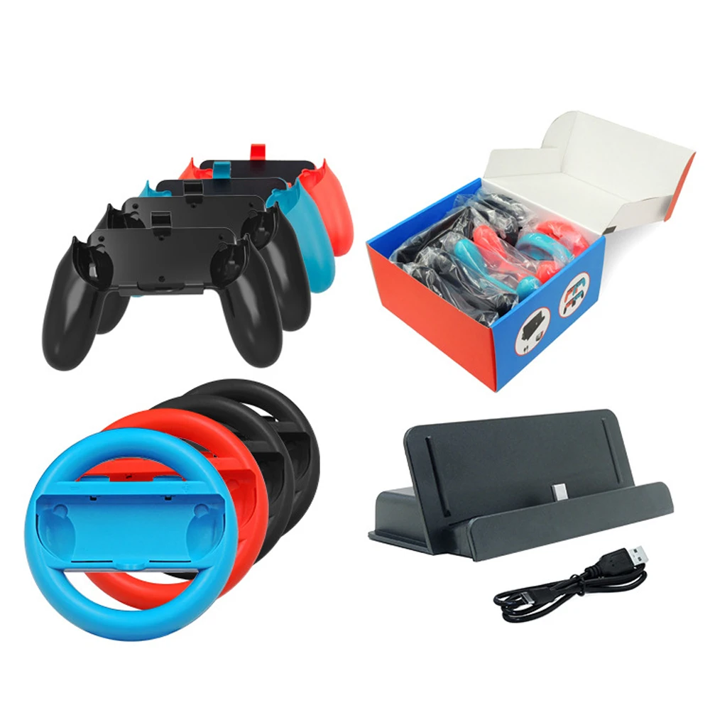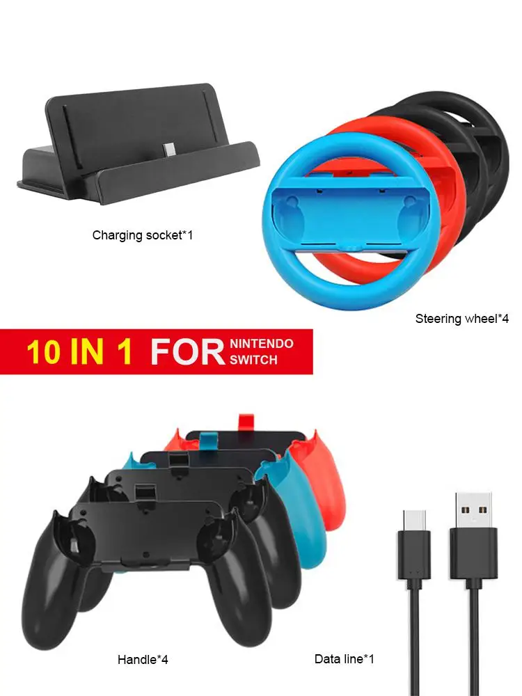 10 в 1 игровые аксессуары для Nintendo Switch для зарядки Bock Stand Racing Steel Wheel Handle Grip Joy Game Con Controller