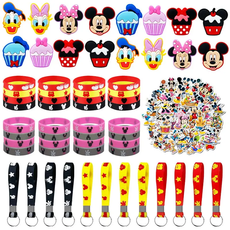 150 шт. игрушки для вечерние с Микки и Минни Маусом, браслеты, цепочка для ключей, наклейки, маленькие подарки для детей, товары для вечеринки в честь Дня Рождения гостей