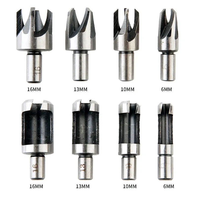 4 шт. Деревянная заглушка из углеродистой стали, инструмент для резки пробки, набор сверл, прямой и конический конус 58 "12" 38 "14" Инструменты для деревообработки