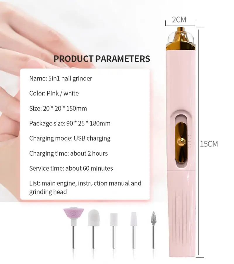Машинка для полировки ногтей 5 в 1 с USB-зарядкой