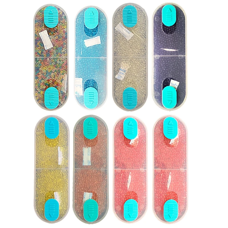 Медленно Налейте ароматные бусины в нижнюю часть коробки для бисера.