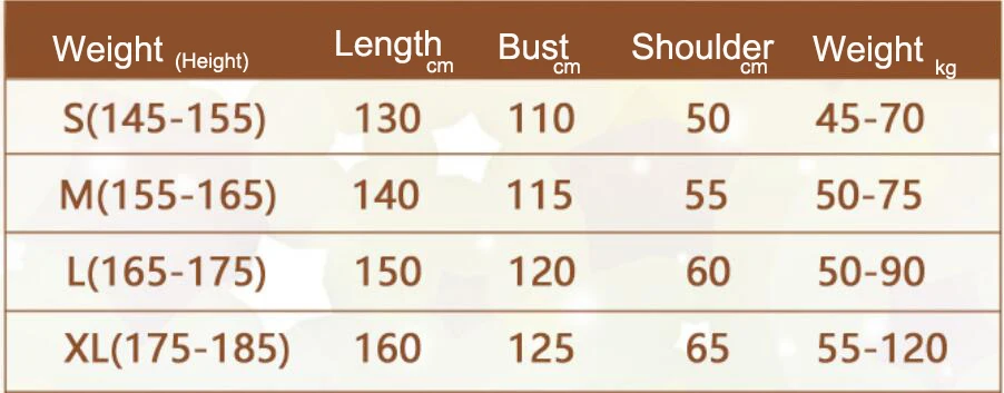 100% новыйМатериал: фланельS: рост 145-155 см, вес 45-70 кгM: Рост 155-165 см, вес 50-75 кгL: рост 165-175 см, вес 50-90 кгXL: Рост 175-185 см, вес 55-120 кг