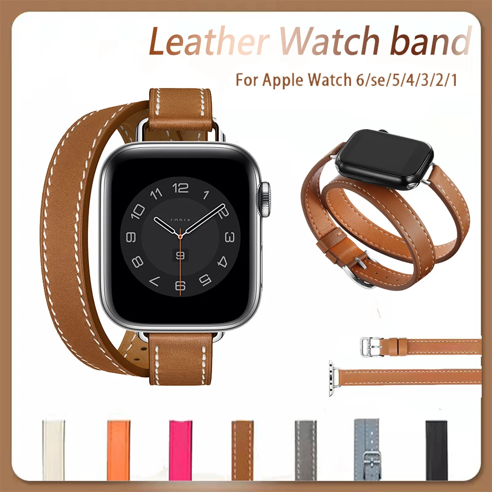 Двойной кожаный ремешок для Apple Watch band 45 мм 42 мм 44 мм сери...