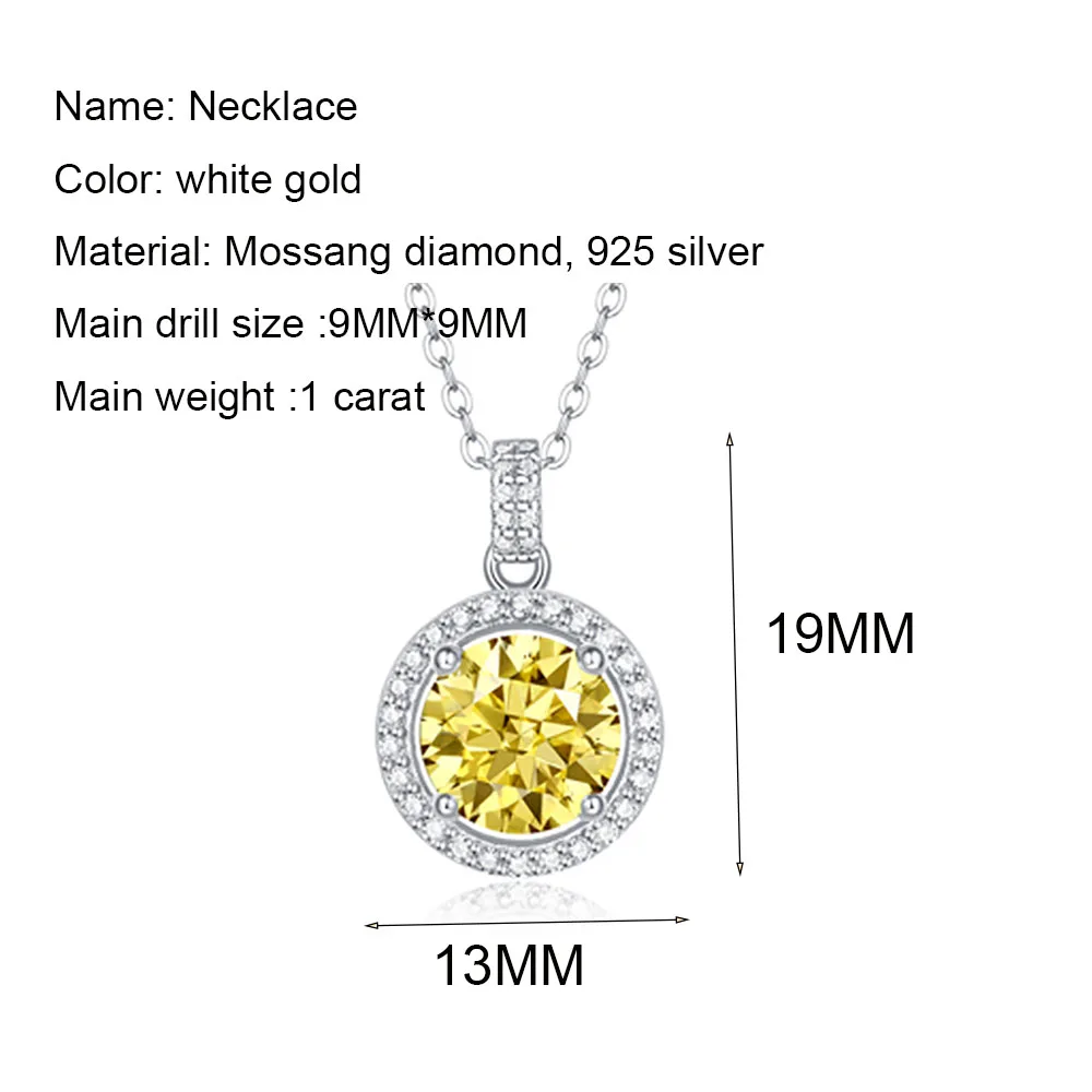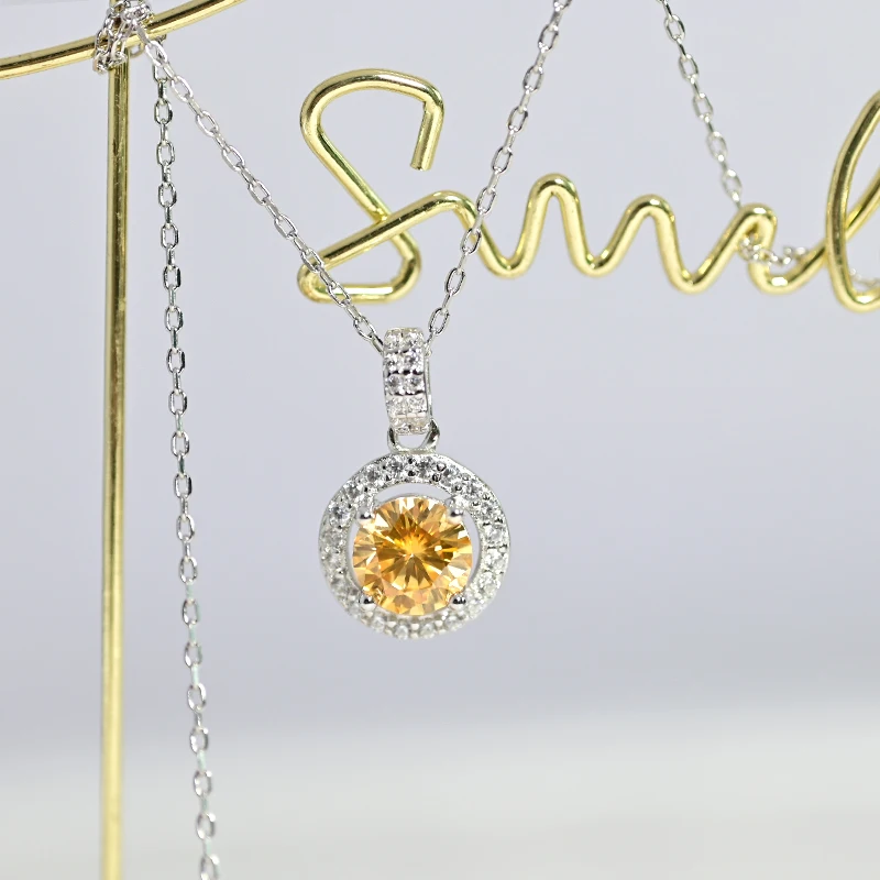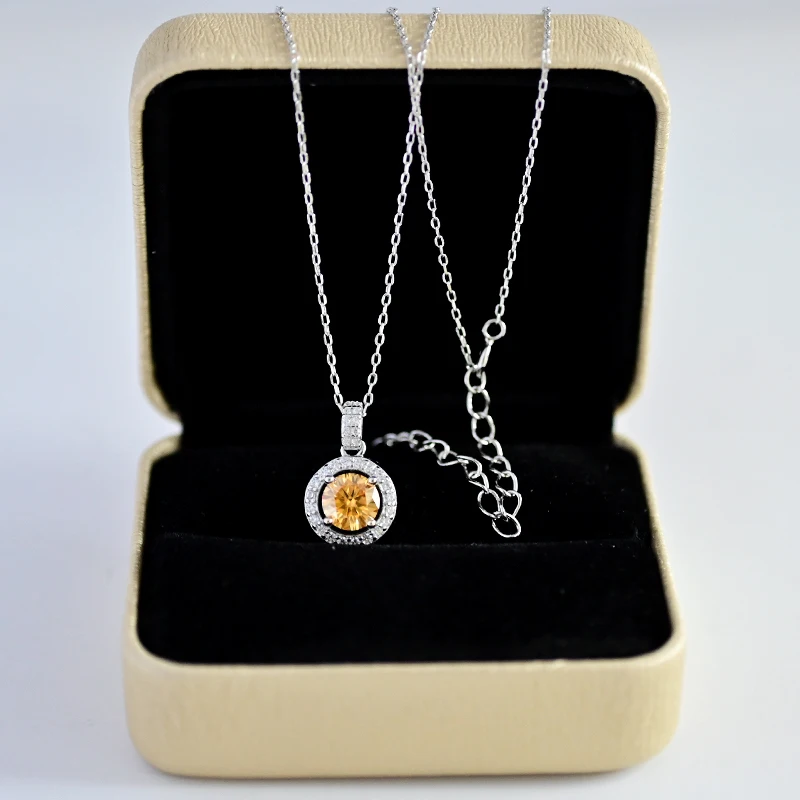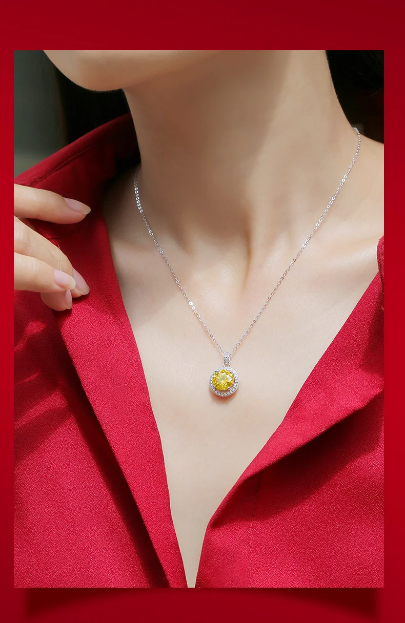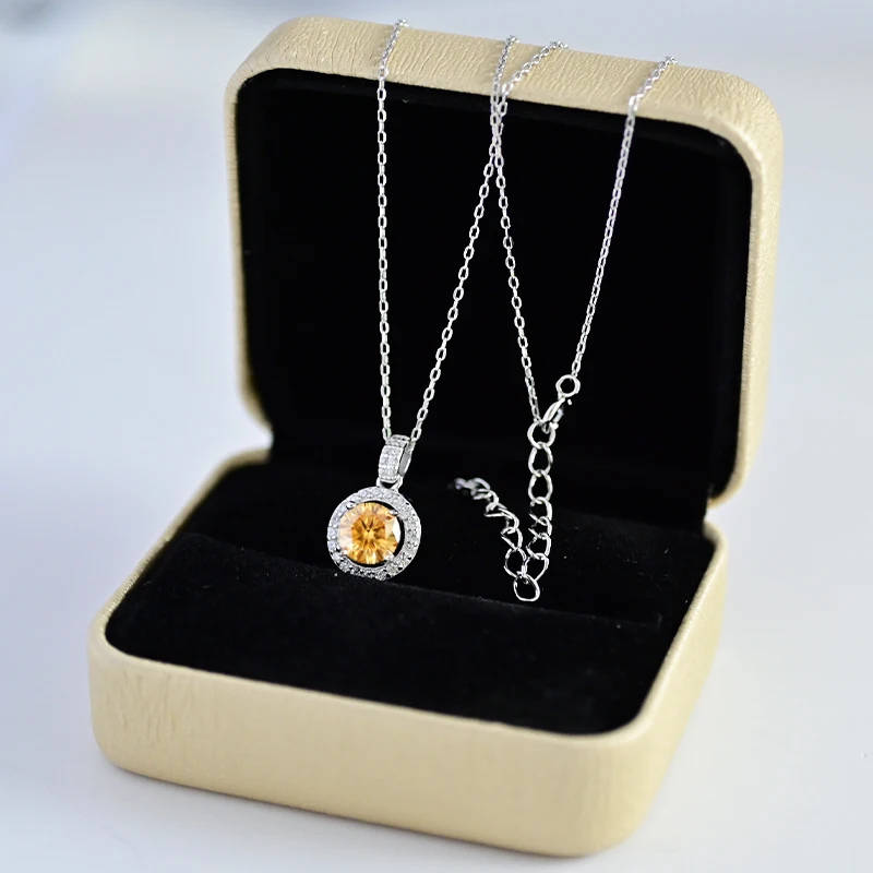 Женское колье с круглым жёлтым муассанитом 1 карат, из серебра 925 ...