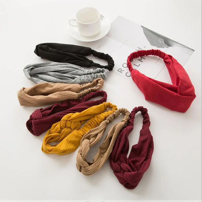 Вязаная повязка на голову, бандана, Женская винтажная повязка для волос, тюрбан, однотонная женская повязка на голову, аксессуары для волос, подарки