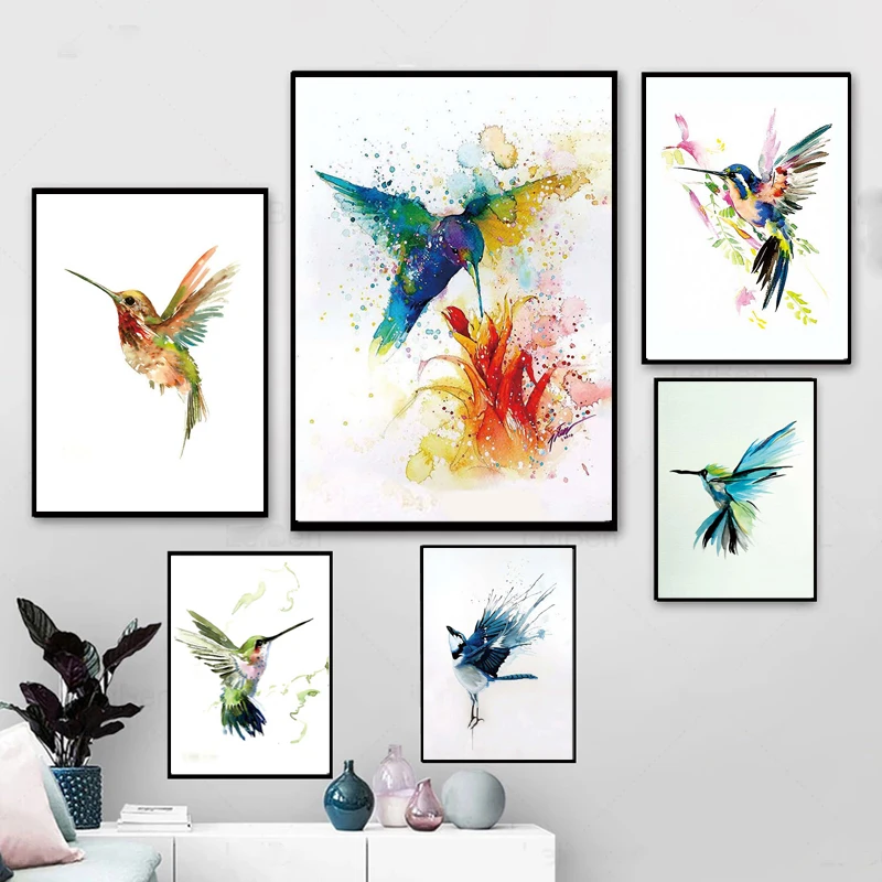 Животные Колибри винтажные плакаты и принты Холст Живопись Птица ра...