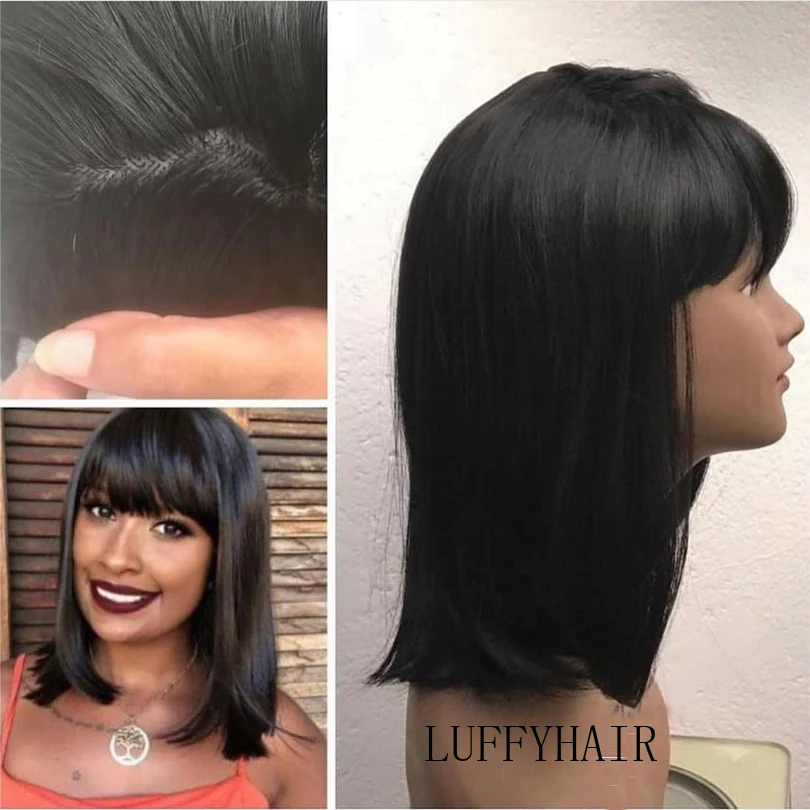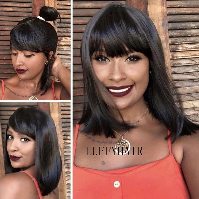 LUFFYHAIR курчавые прямые человеческие волосы парик с челкой безкле...