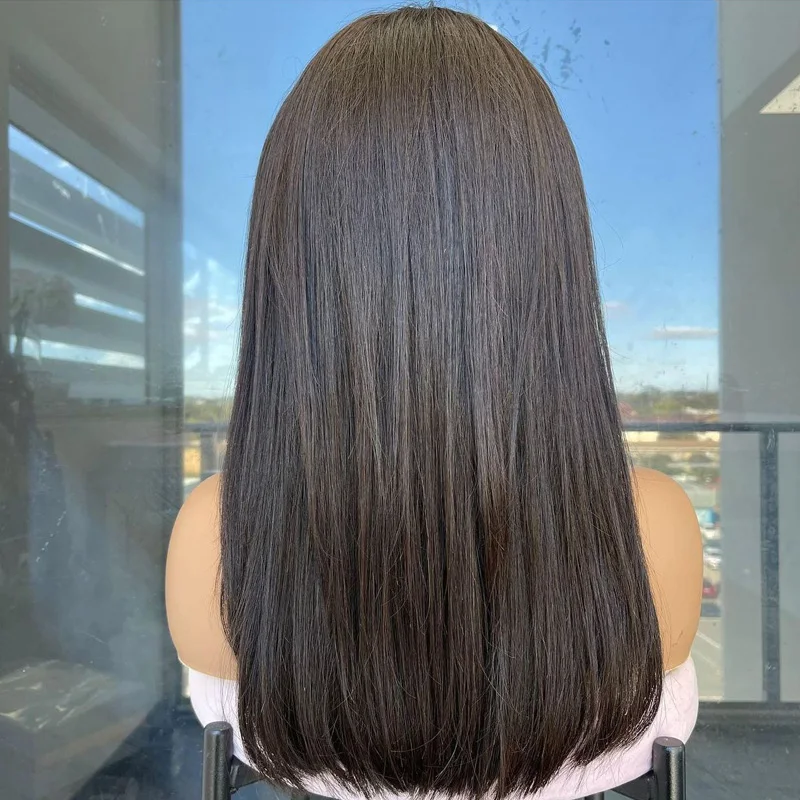 Парики из человеческих волос черного и коричневого цвета на шелково...
