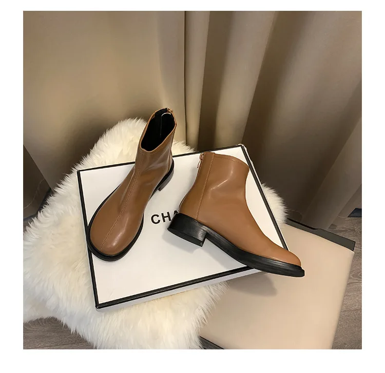 Полусапожки женские из мягкой кожи, на толстом каблуке, Осень-зима ...