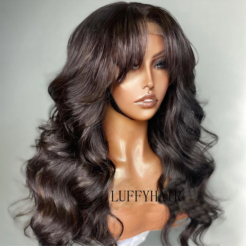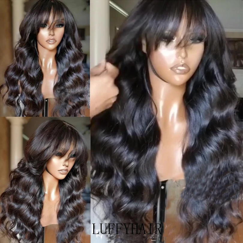 Парики LUFFYHAIR на шелковой основе, человеческие волосы с челкой, индийские волнистые, без клея, 5x5, парики для женщин на шелковой основе