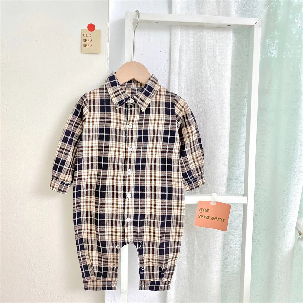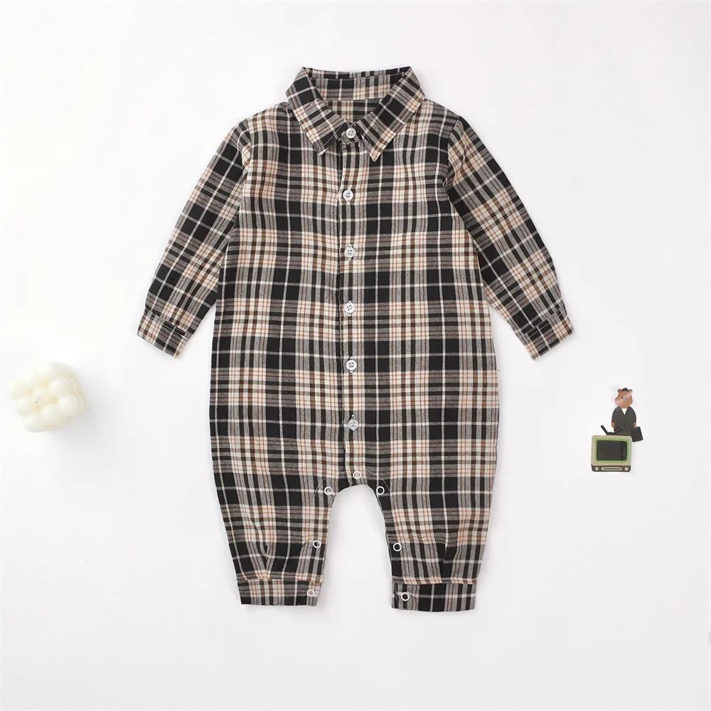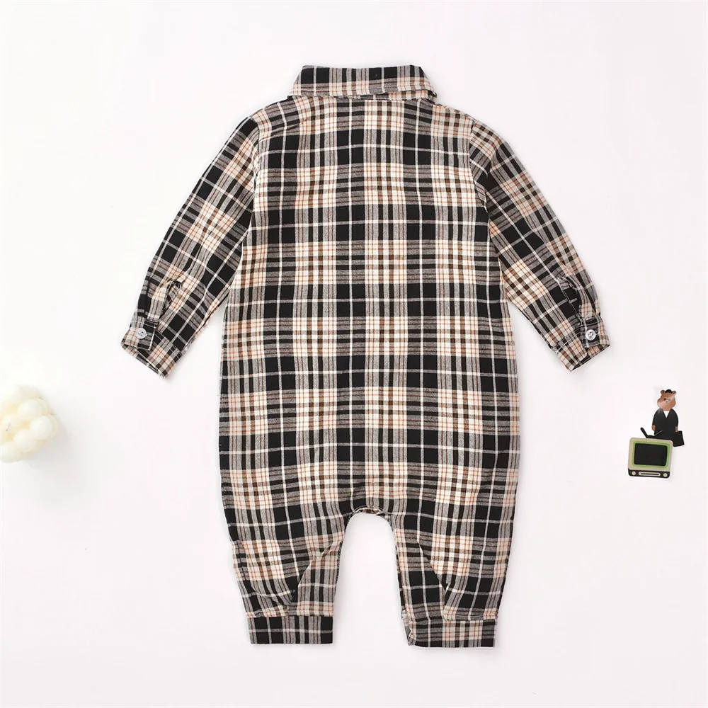 Одежда для новорожденных, Детский комбинезон для мальчиков, джентльменов, Одежда для новорожденных в клетку, демисезонный комбинезон с длинным рукавом, комбинезон на 0-36 месяцев