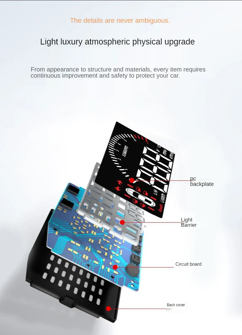 Поднимите голову вперед и Попрощайтесь с головой внизЭто позволяет нам отслеживать различные данные на приборной панели транспортного средства в любое время, не взглянув на него вниз. Контроль в режиме реального времени, избегая дорожно-транспортных происшествий, причиняющих Отвлечение во время вождения.