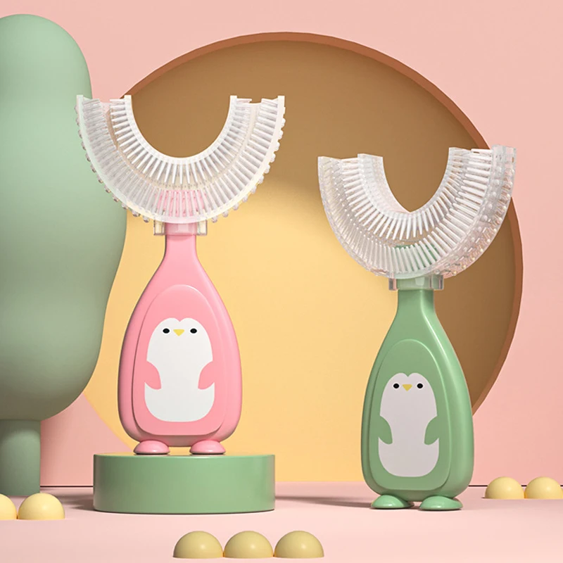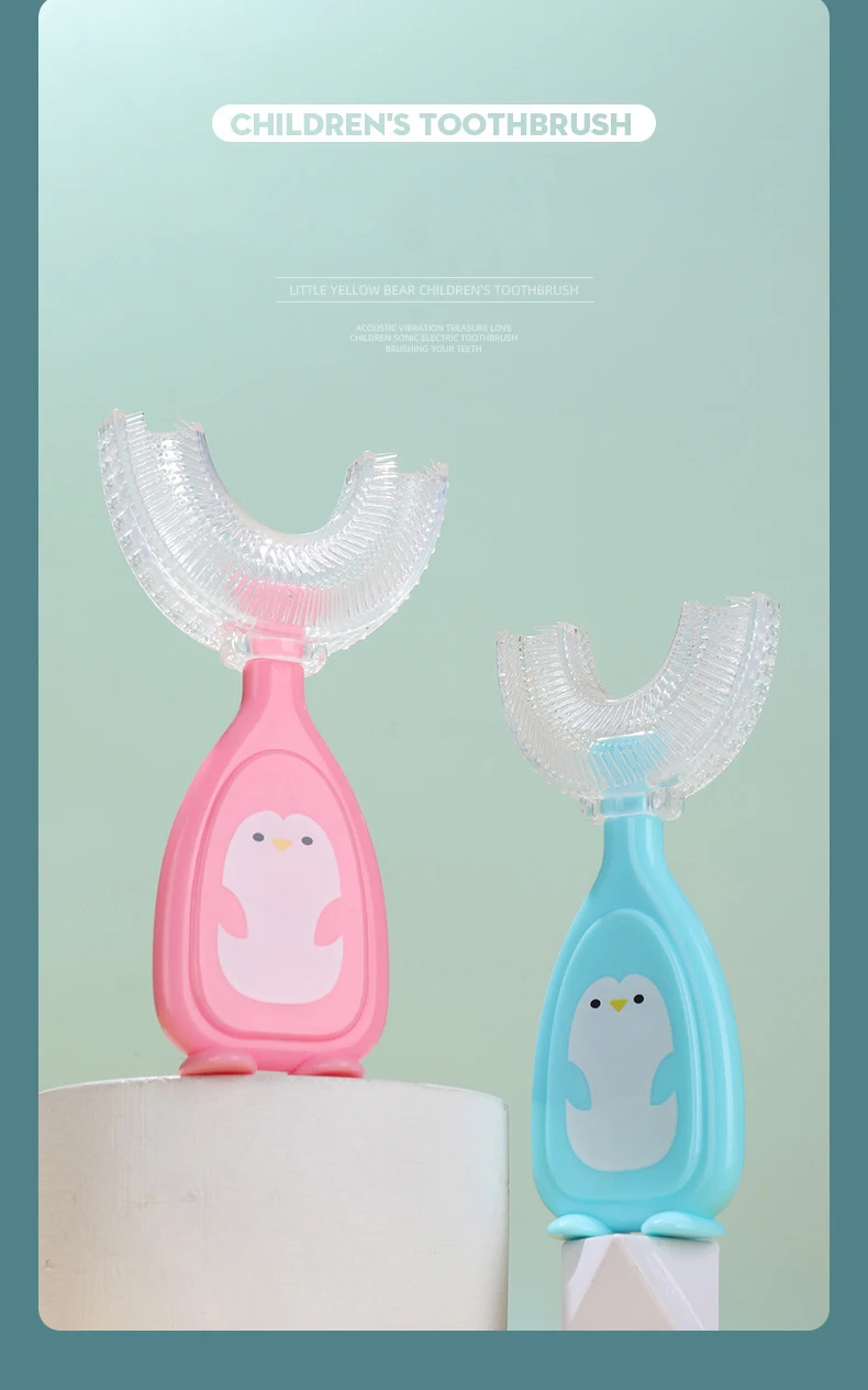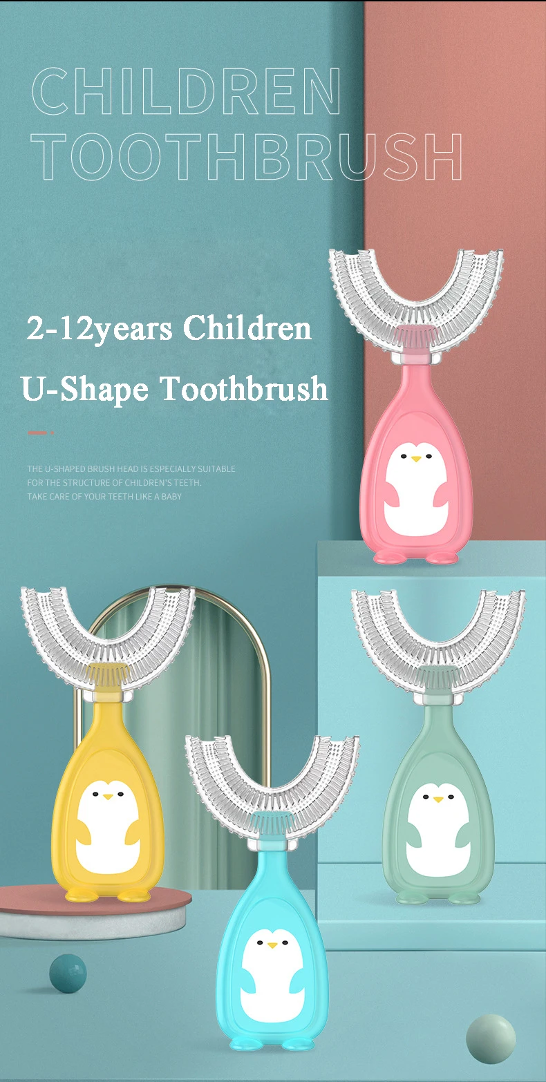 Детская U-образная зубная щетка От 2 до 12 лет, детская зубная щетка для ухода за полостью рта, чистящая зубная щетка из мягкого пищевого силикона, детская зубная щетка с мультяшным рисунком