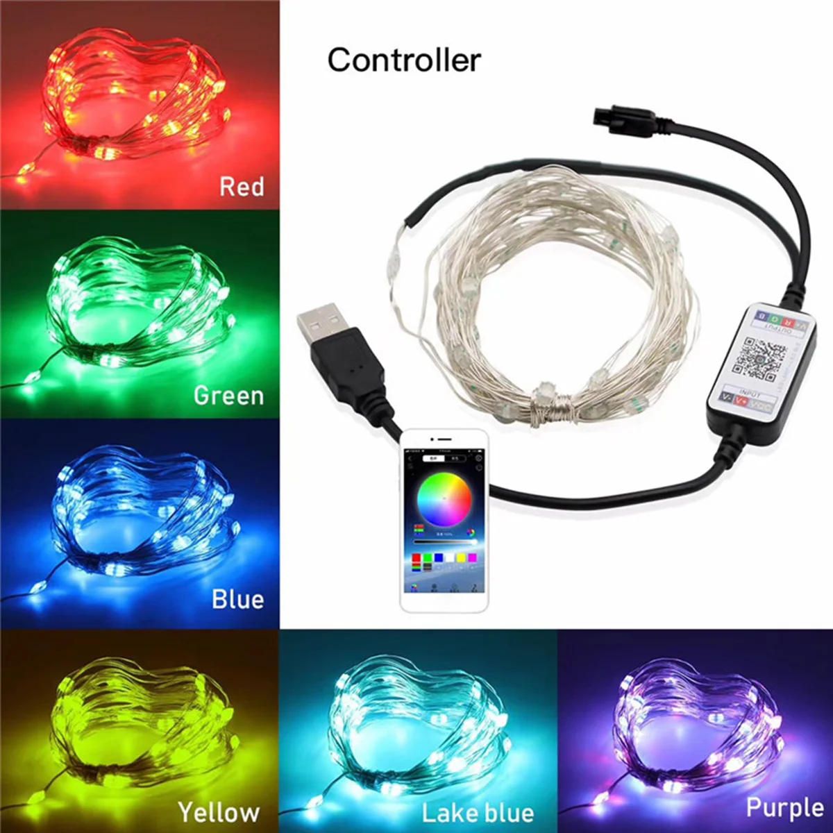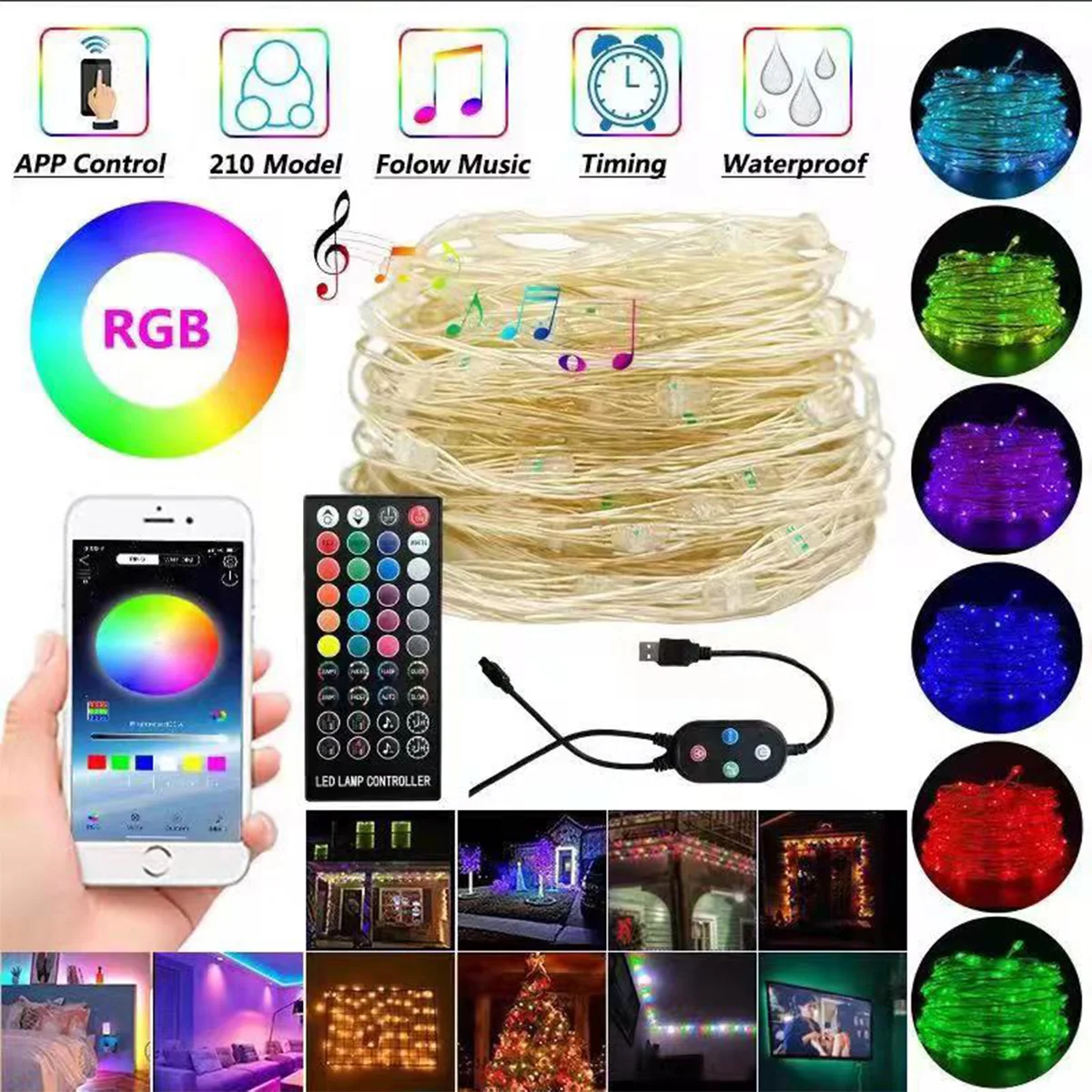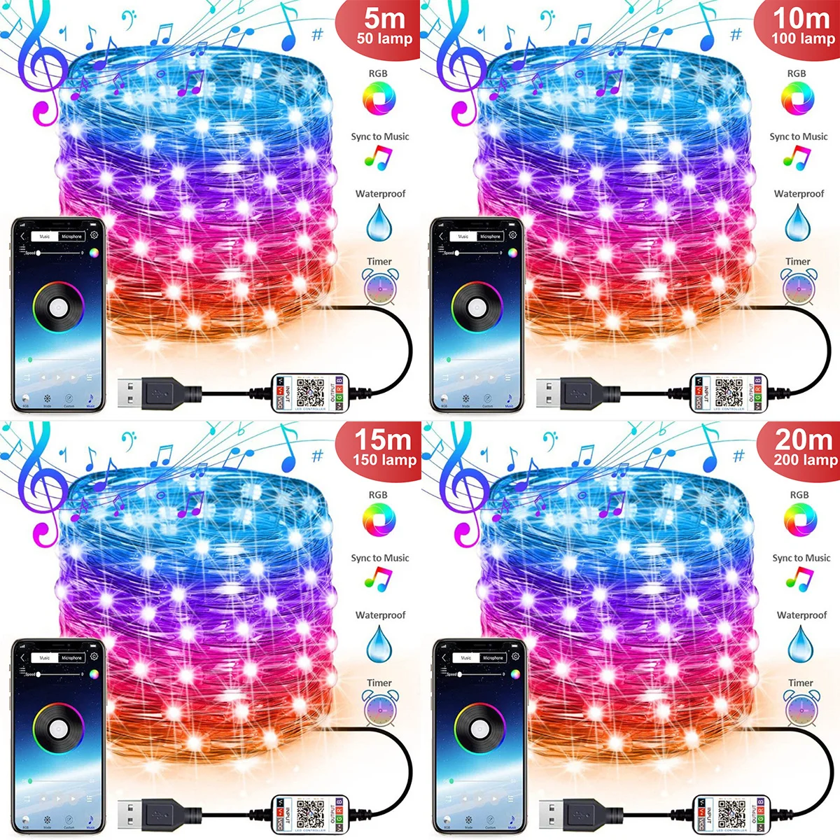 Светодиодная гирлянда с USB, свадебное украшение, с управлением через приложение, сказосветильник светильник для внутреннего дворика, сада