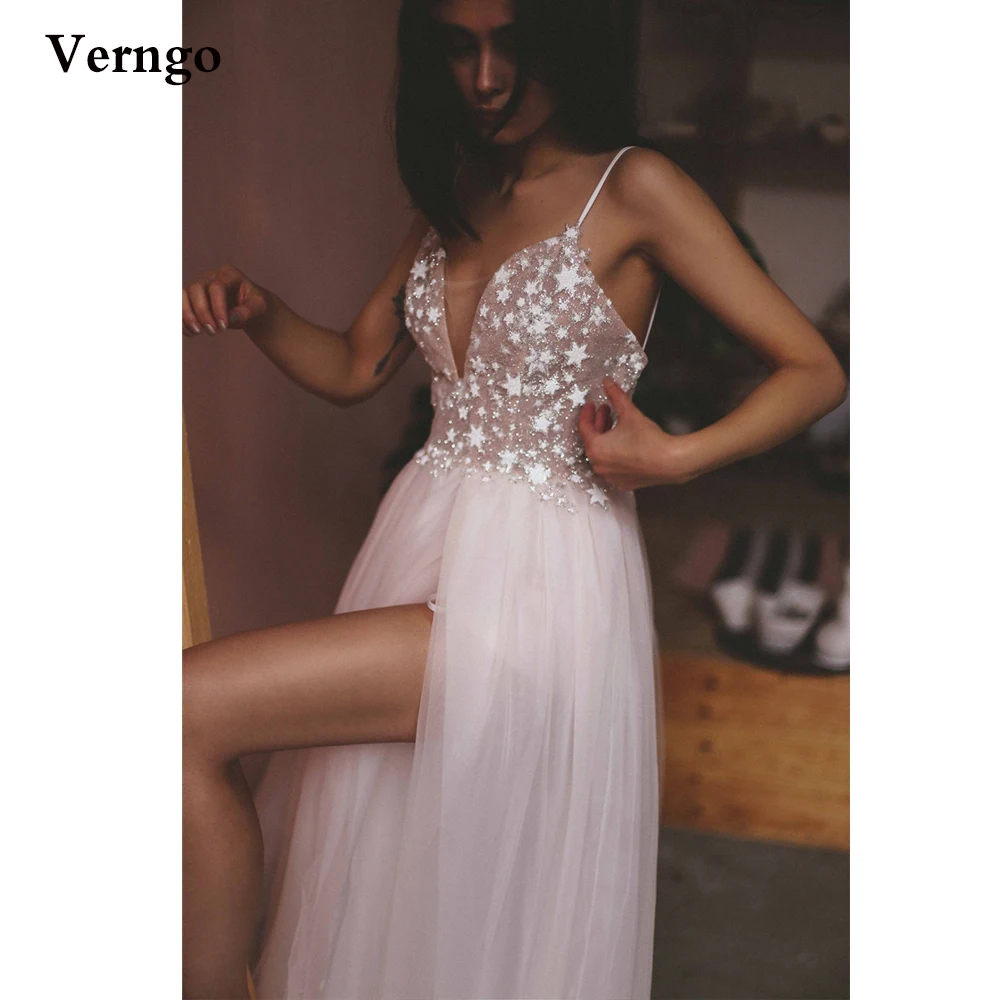 Пляжное свадебное платье из фатина с блестящими звездами Verngo, Привлекательное платье на бретелях-спагетти с разрезом, женское платье для событий