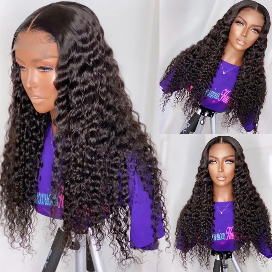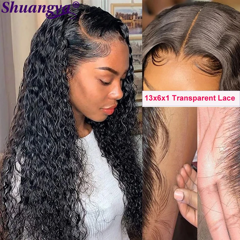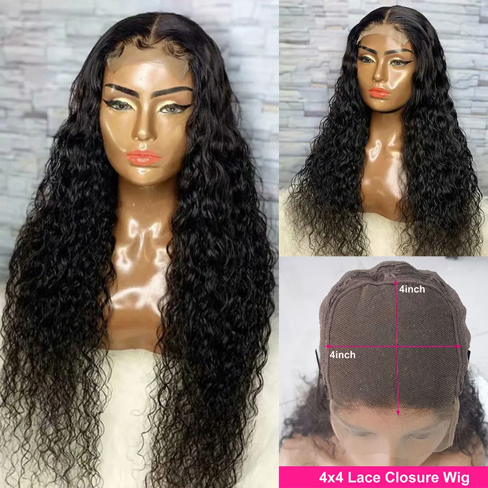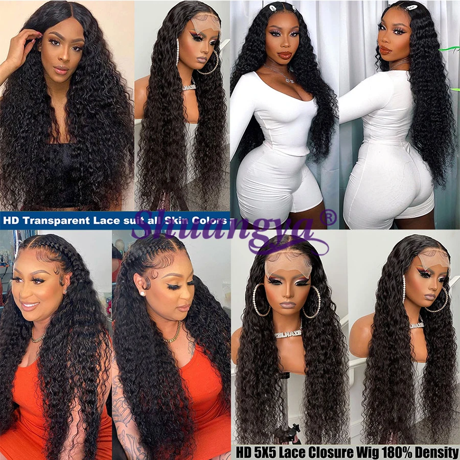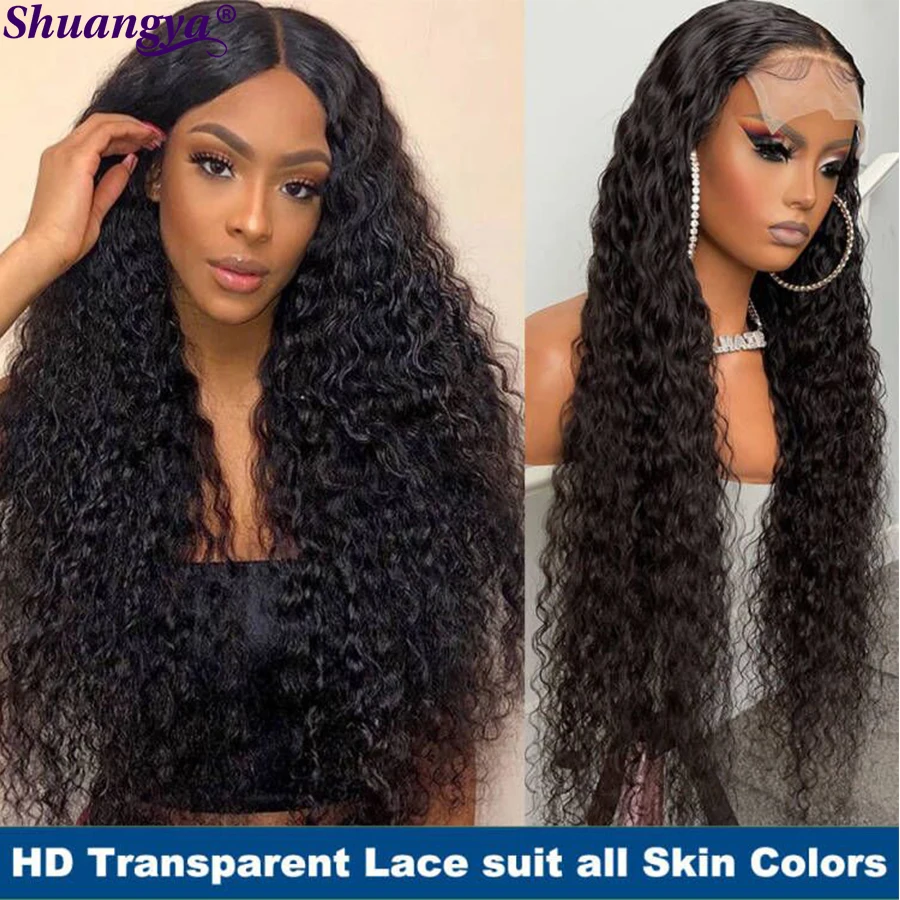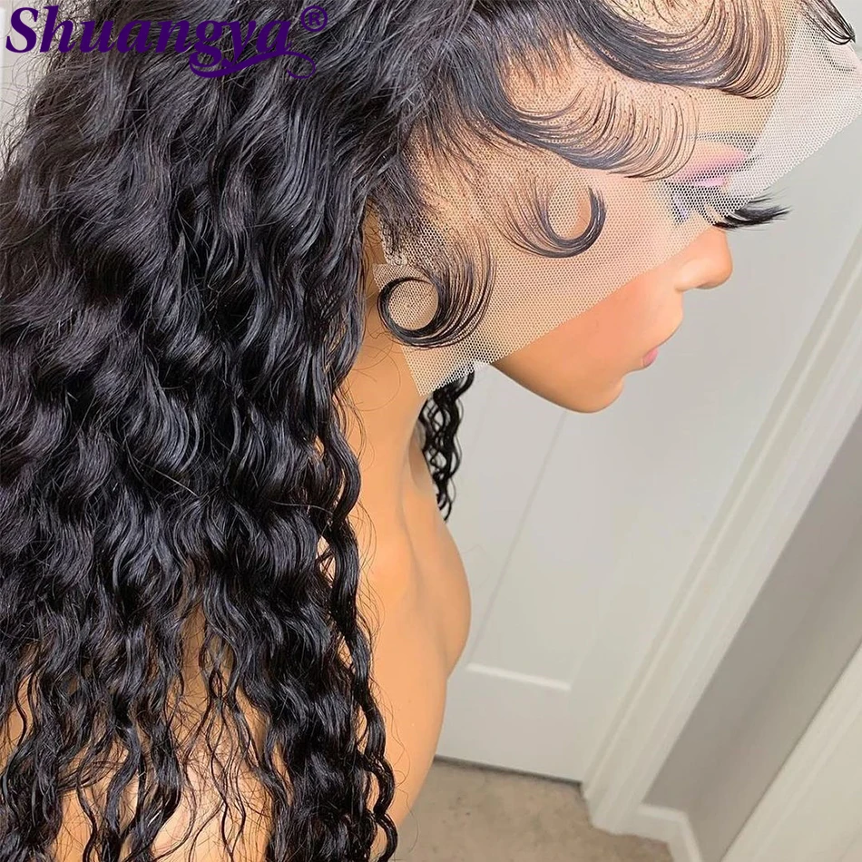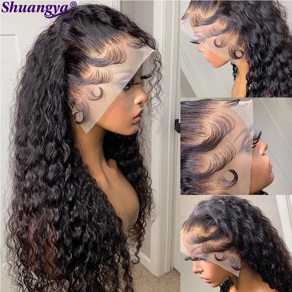 Парик на шнуровке с глубокой волной, 100% натуральные волосы Remy, перуанские длинные волосы 8-30 дюймов, парик на шнуровке 4x4, вьющиеся Волнистые парики Shuangya