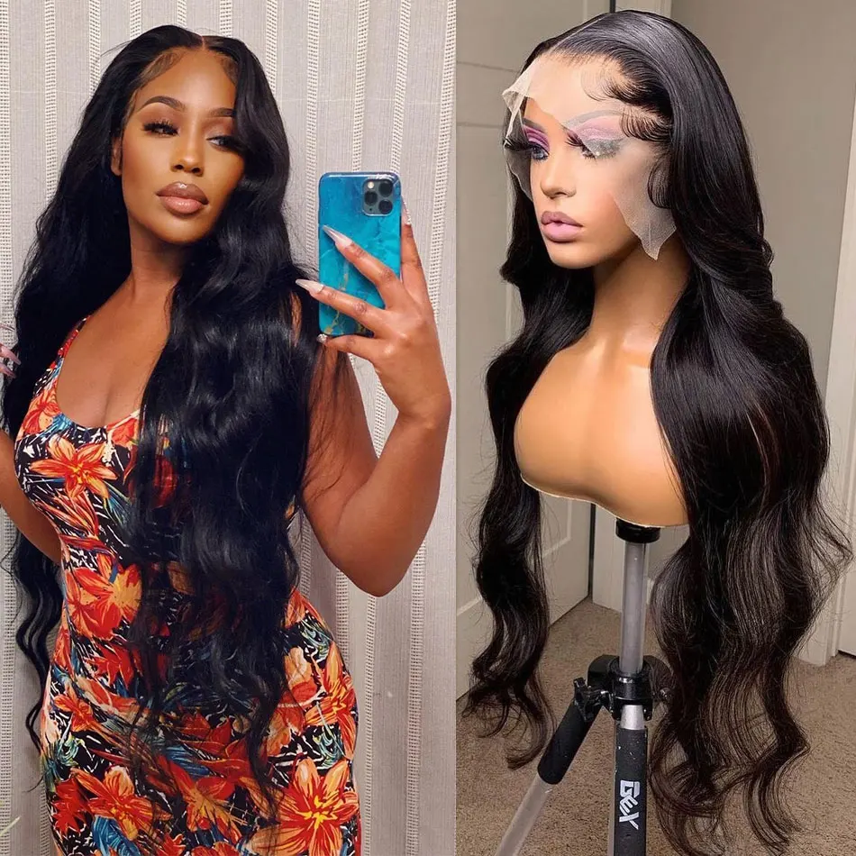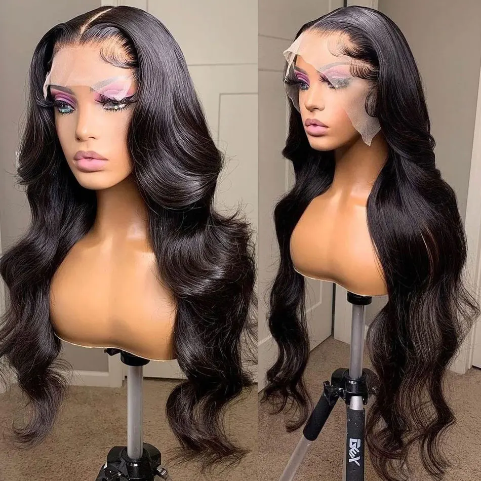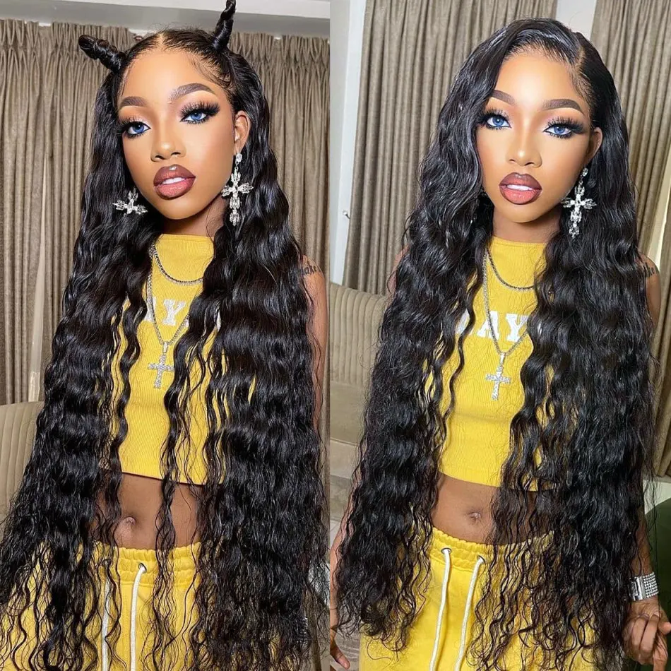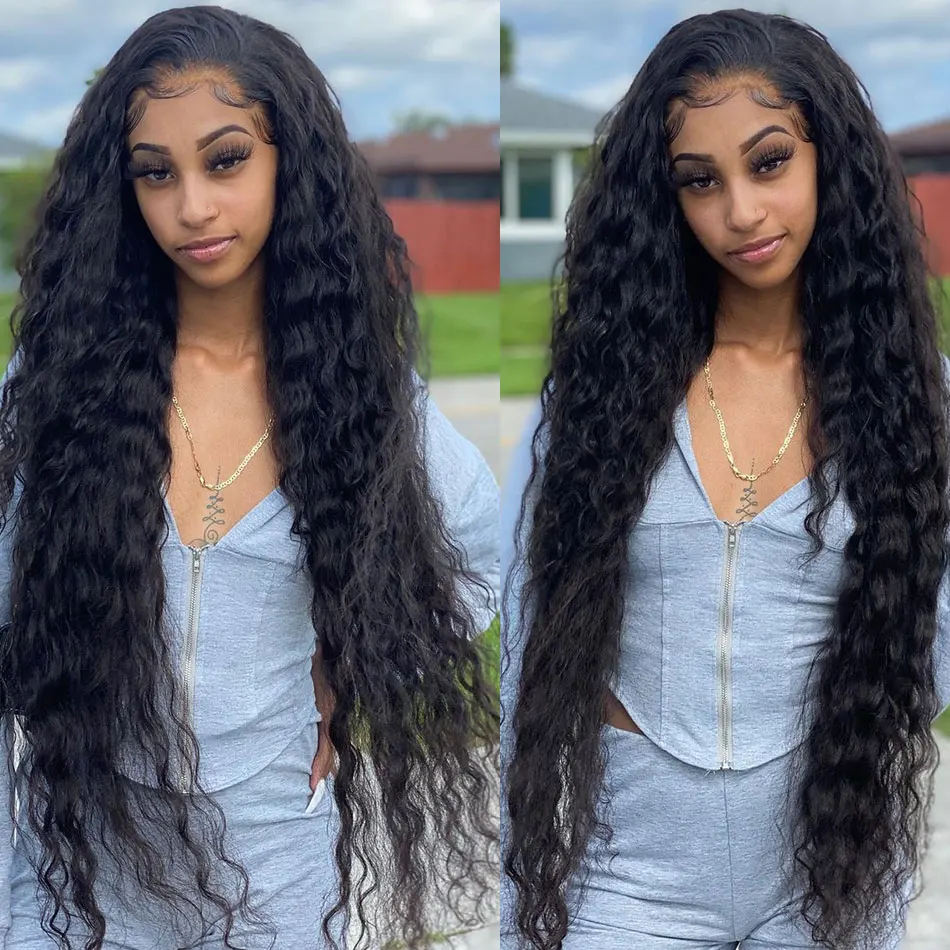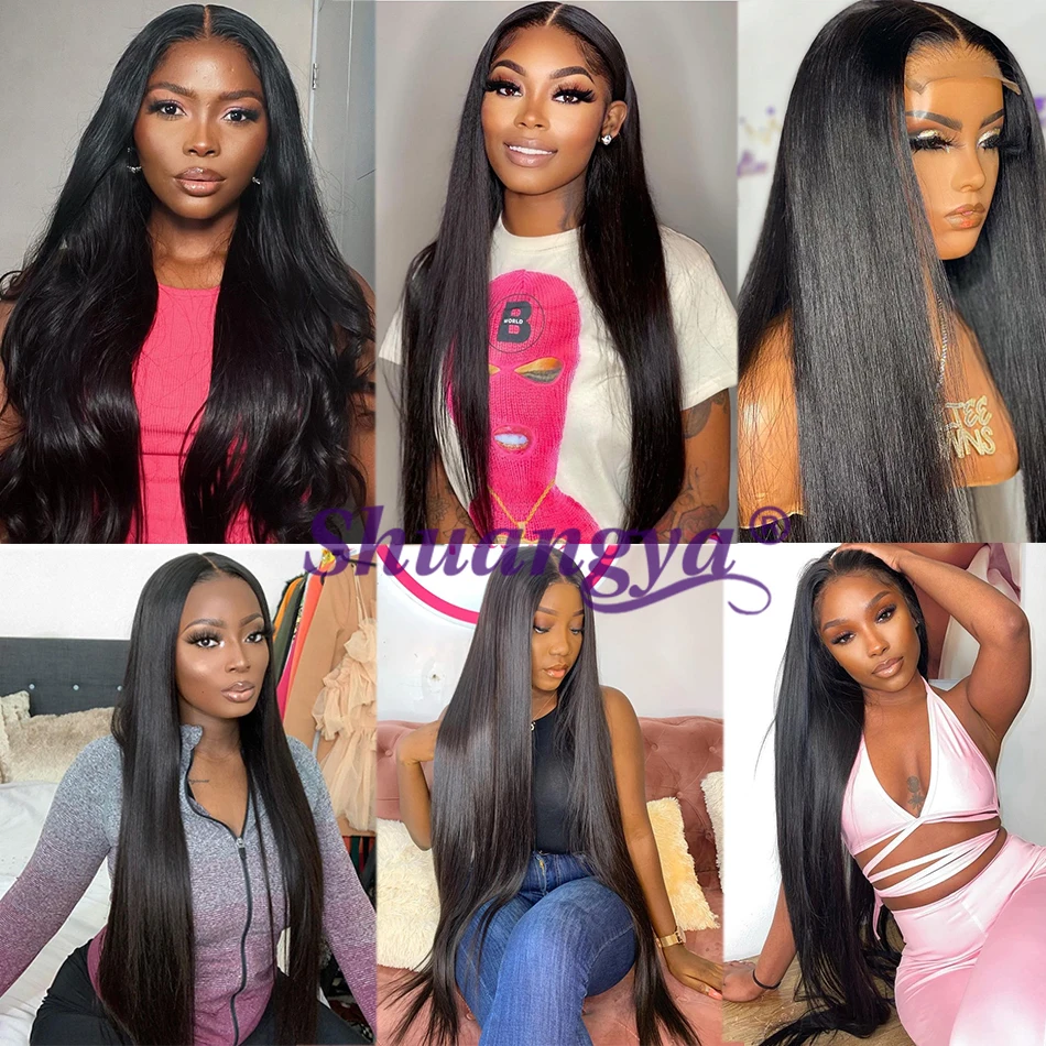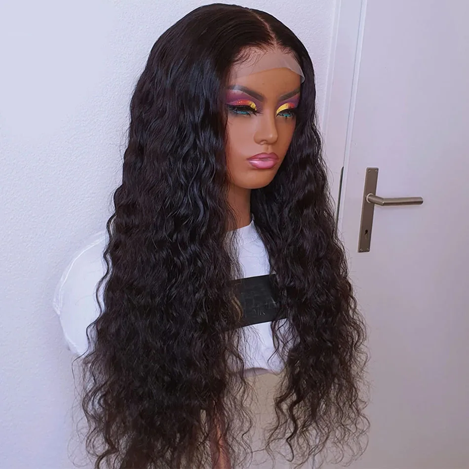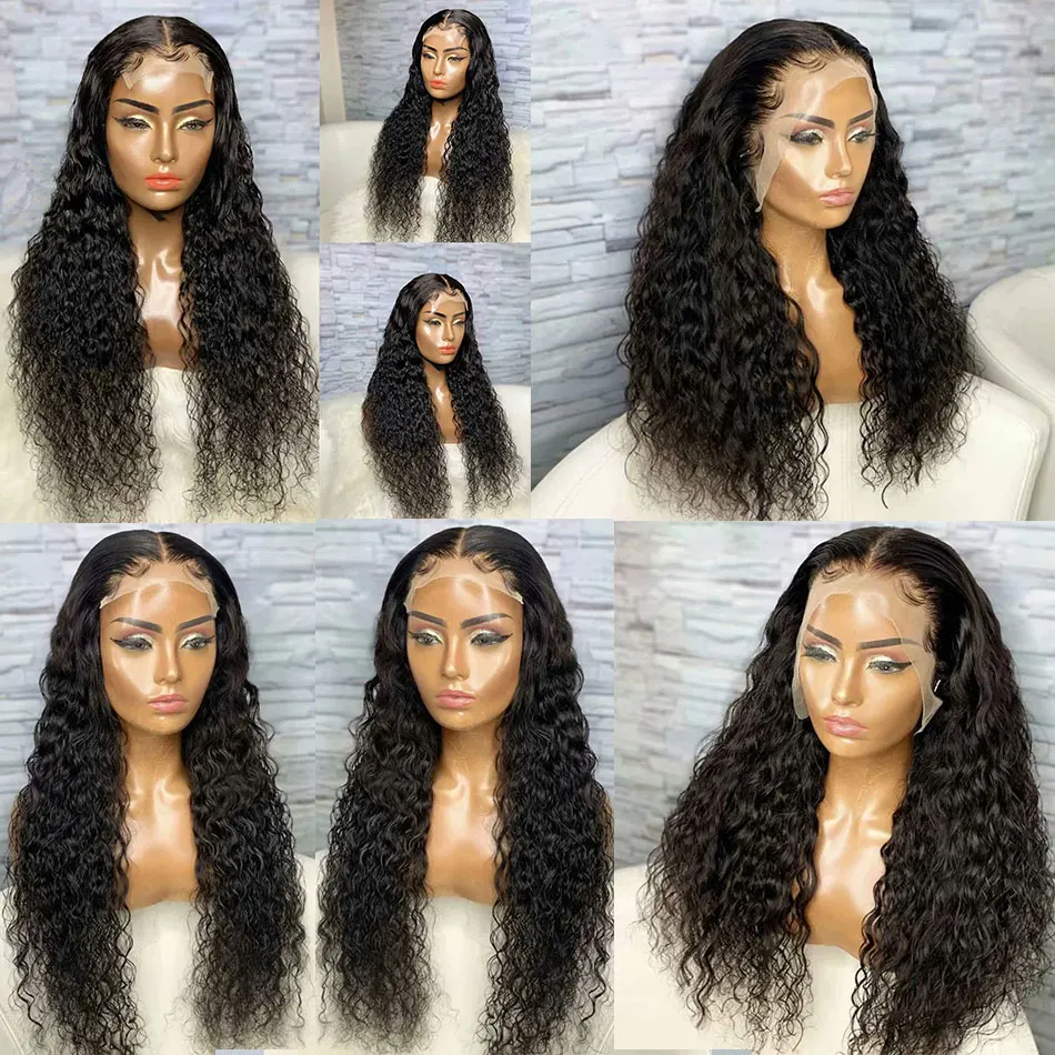 Парик на шнуровке с глубокой волной, 100% натуральные волосы Remy, перуанские длинные волосы 8-30 дюймов, парик на шнуровке 4x4, вьющиеся Волнистые парики Shuangya
