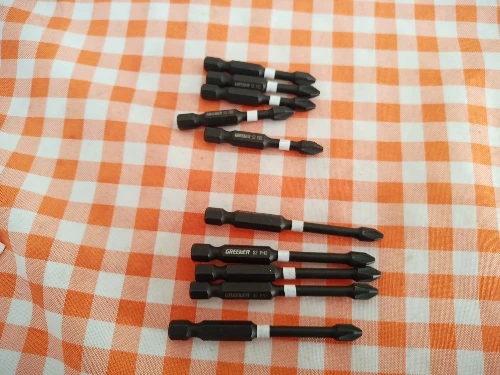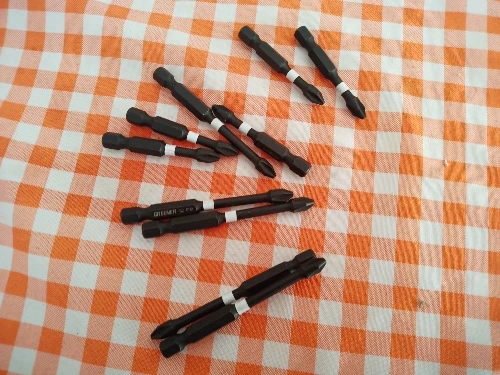 Биты вроде бы и ничего. Закрутили примерно 30 саморезов в металлический профиль. Грани вроде не слизало. Крутили шуруповёртом. Саморез садится хорошо,биты ровные.Доставка до Липецка быстрая.Короче,за такую цену,огонь. Брал чёрные. На самом деле они не чёрные,а покрашены.