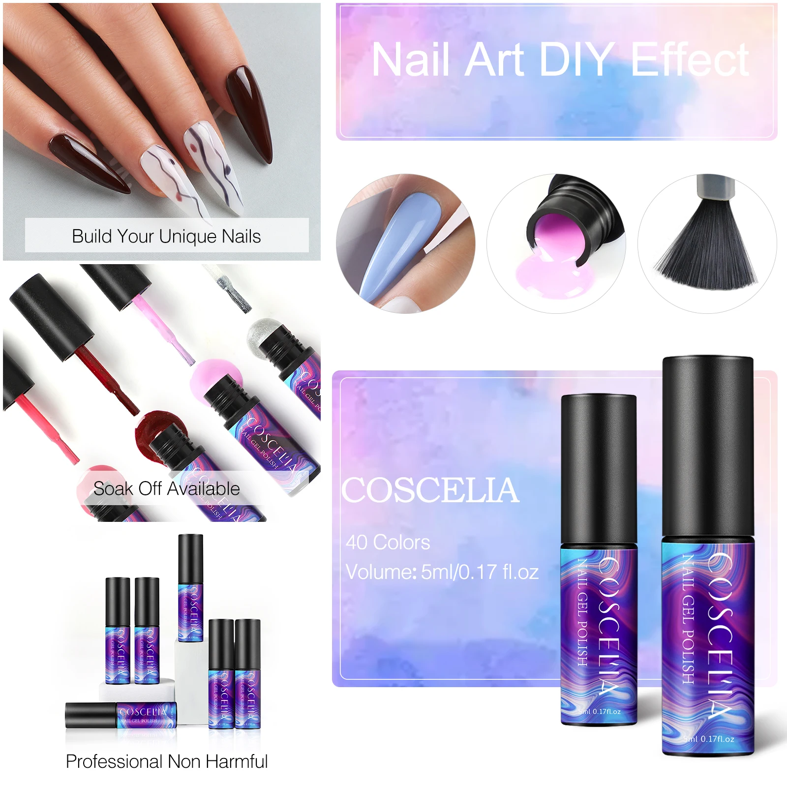 Набор для ногтей COSCELIA, 5 мл, 61018 шт., Гель-лак для ногтей, полуперманентный, с базовым и верхним покрытием, лак для дизайна ногтей, маникюра