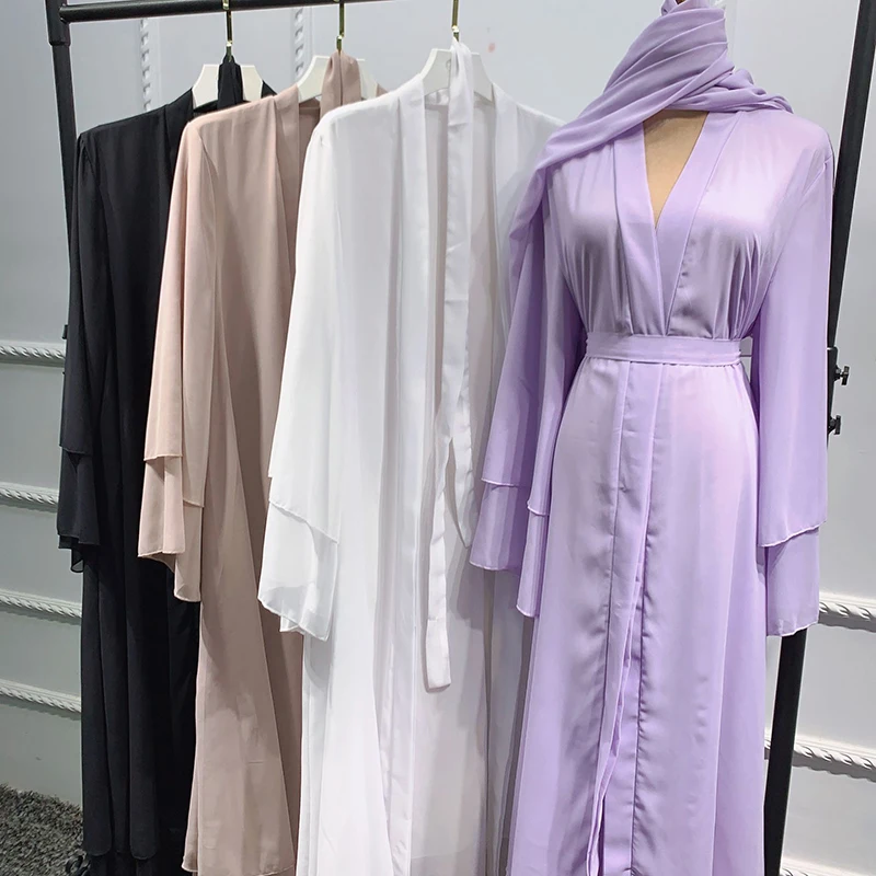 Шелковый шифоновый кардиган в мусульманском стиле, абайя, длинное п...