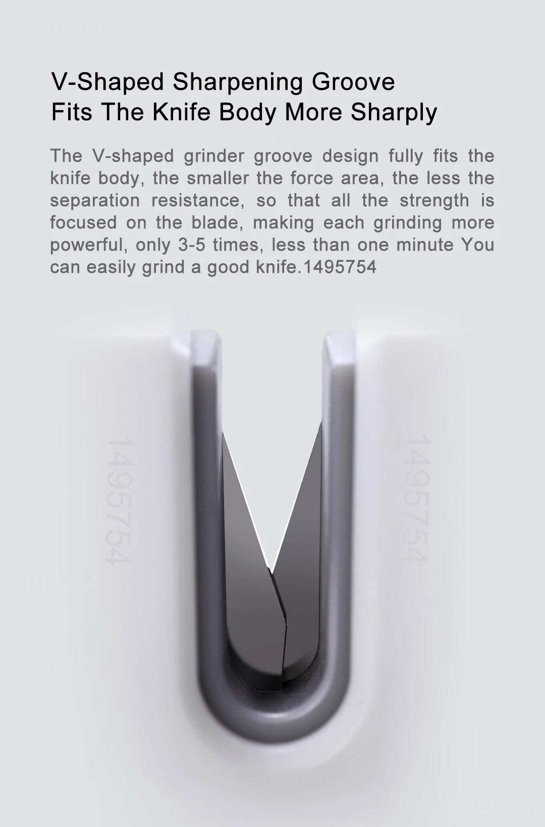 V-образная шлифовальная паза предназначена для крепления к корпусу лезвия. Чем меньше площадь силы, тем меньше сопротивление разделения, так что сила фокусируется на лезвиях, что делает каждый помол более мощным. Всего 3-5 раз, менее одной минуты, вы можете легко Измельчить острый нож.