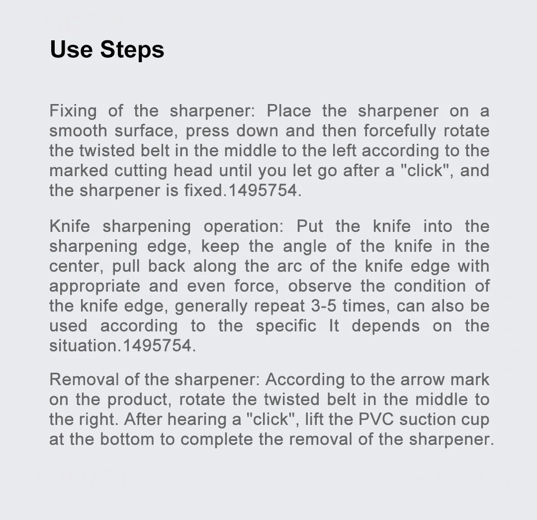 Поместите нож в заточку, держите угол ножа в середине, с соответствующей и равномерной силой, потяните назад вдоль дуги режущей кромки, соблюдайте состояние режущей кромки, как правило, повторите 3-5 раз, или в соответствии с специфическим использованием в зависимости от ситуации.