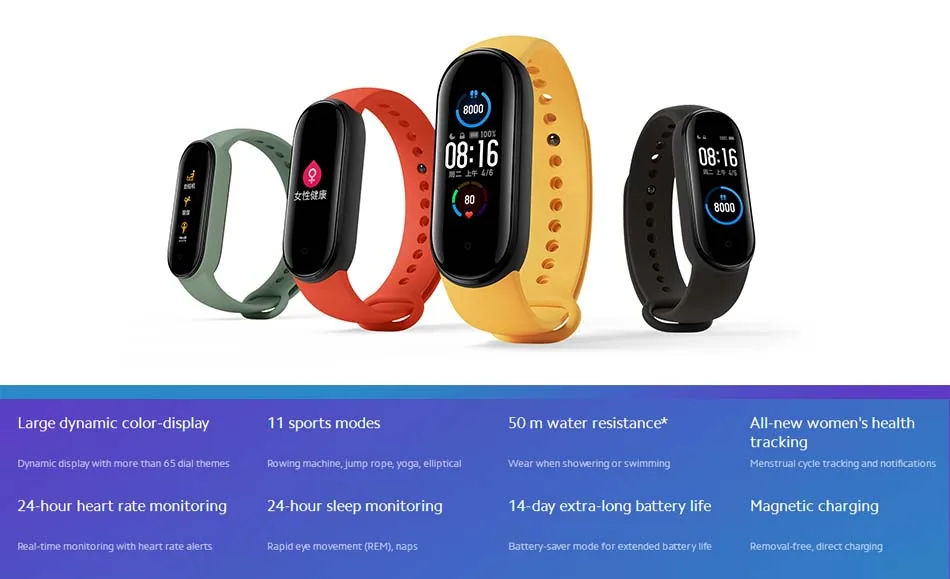 Умный фитнес-трекер Xiaomi Mi Band 5 с AMOLED экраном