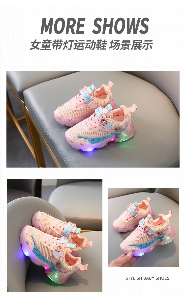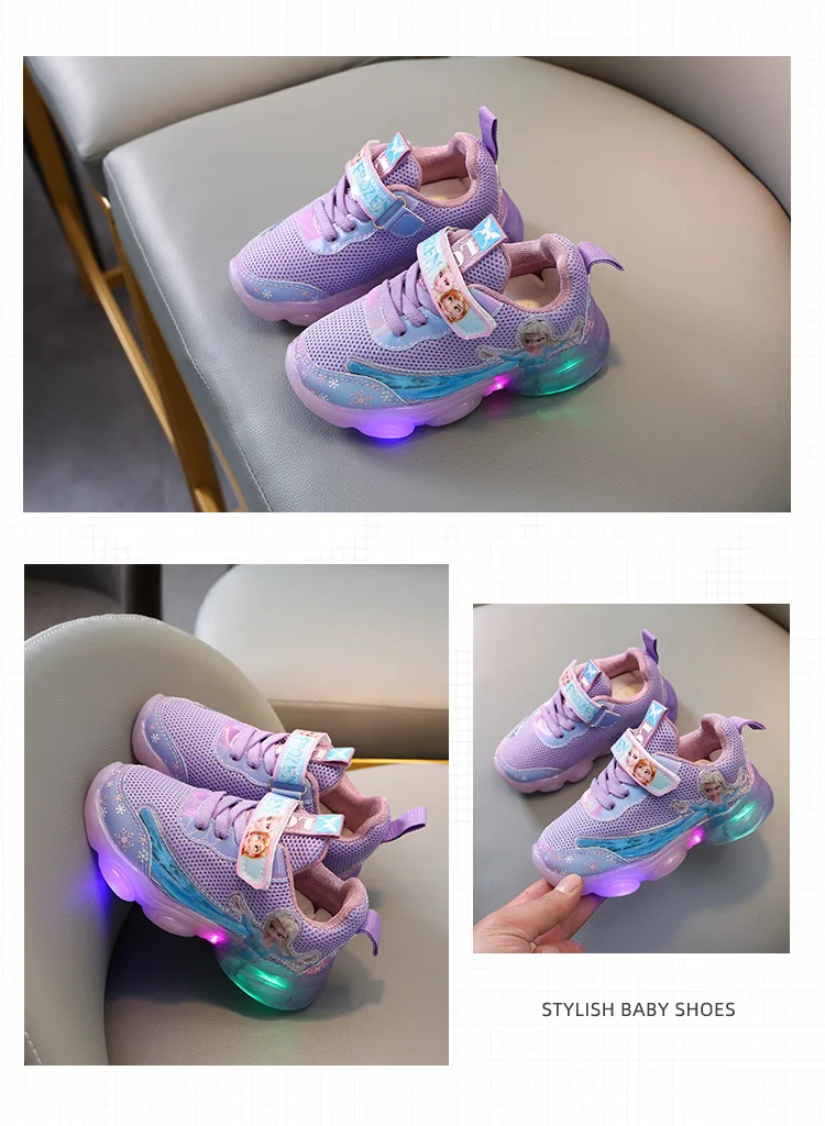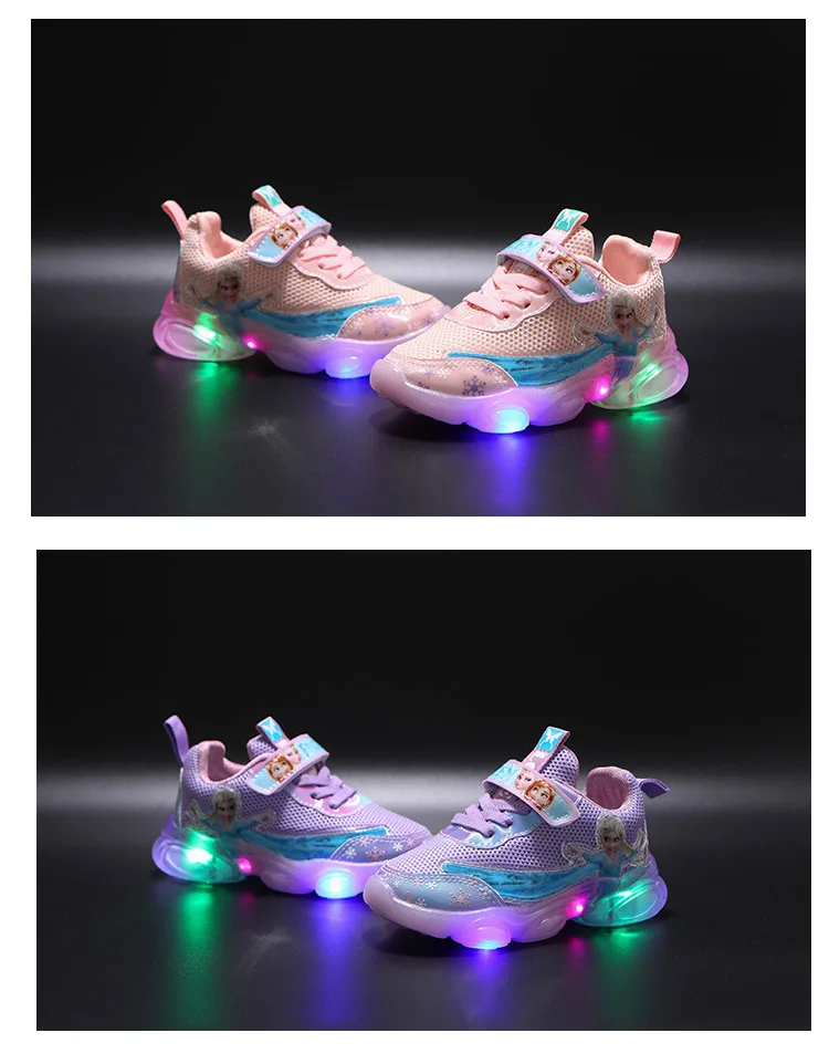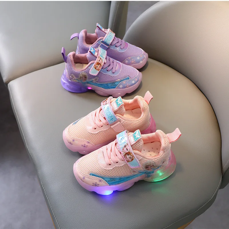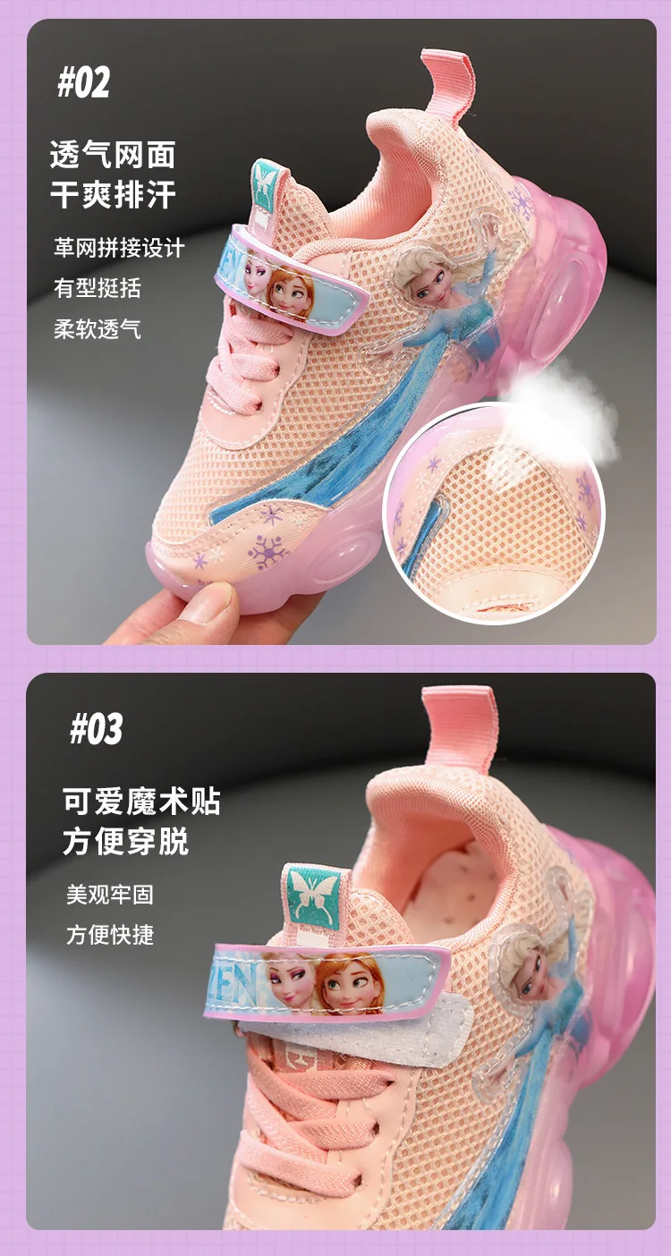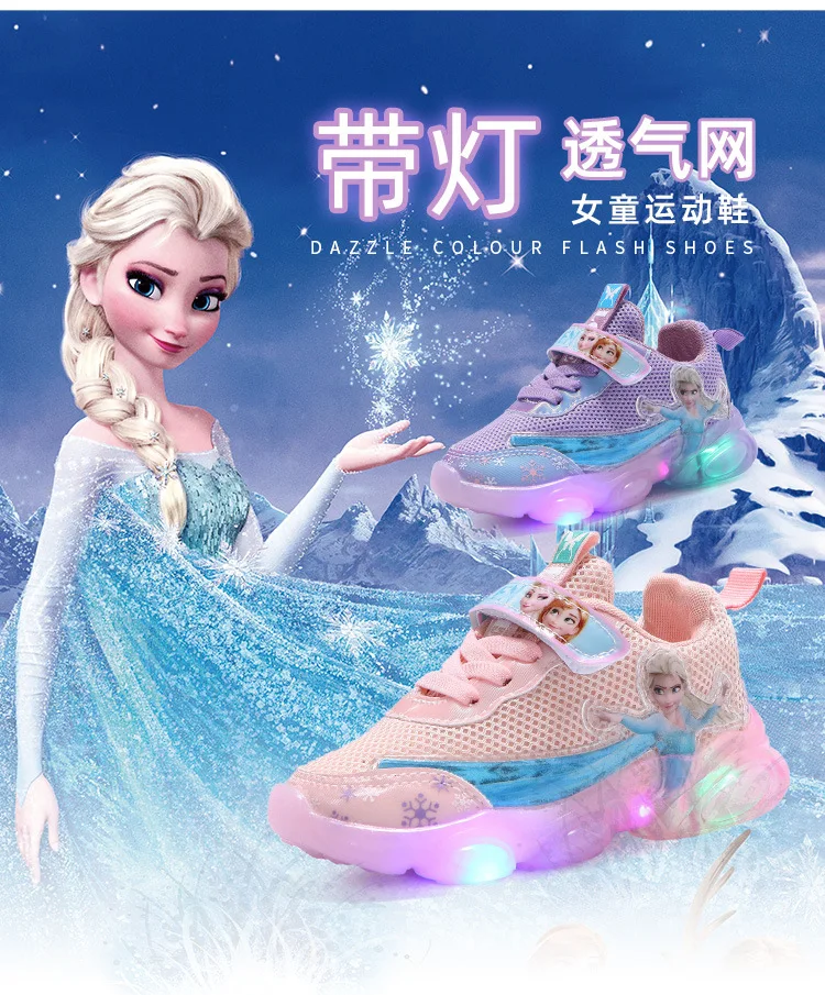 Легкая детская обувь «Холодное сердце», повседневные кроссовки, дышащие, гибкие, Нескользящие, спортивные, для бега, весна-осень