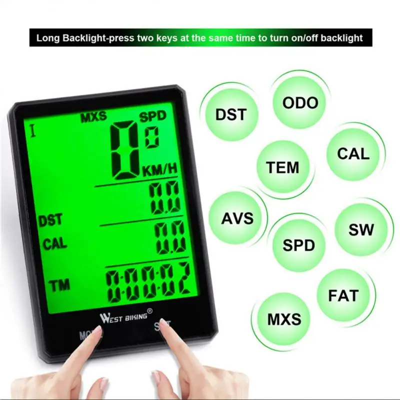 Водонепроницаемый беспроводнойпроводной велосипедный компьютер с подсветкой для горного велосипеда велосипедный одометр секундомер Спидометр светодиодные цифровые часы