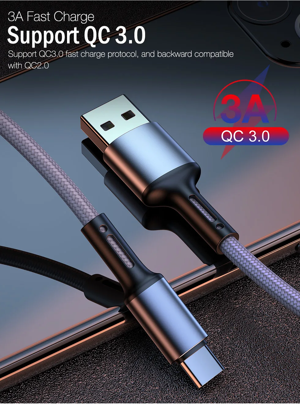 Кабель USB Type-C для Samsung A51 S21 Xiaomi POCO 3A, шнур для быстрой зарядки, USB Type-C, кабель для передачи данных, 3 м