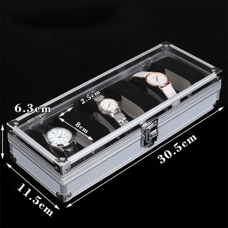 6 ячеек, Сейф для часов, коробка для ювелирных изделий, часы из алюминиевого сплава, чехол для хранения, прозрачная подставка для часов, коробка для мужчин и женщин, подарок