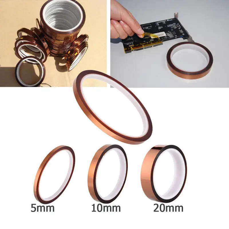 Температура Kapton/полиимидная лента 20/25/30 мм-33 м/рулонВысокотемпературная полиимидная лента Kapton с односторонним силиконовым клеем различных размеровПодходит для 3d-печати, электрической изоляции до 280 °C и печатной платы из ПВХ